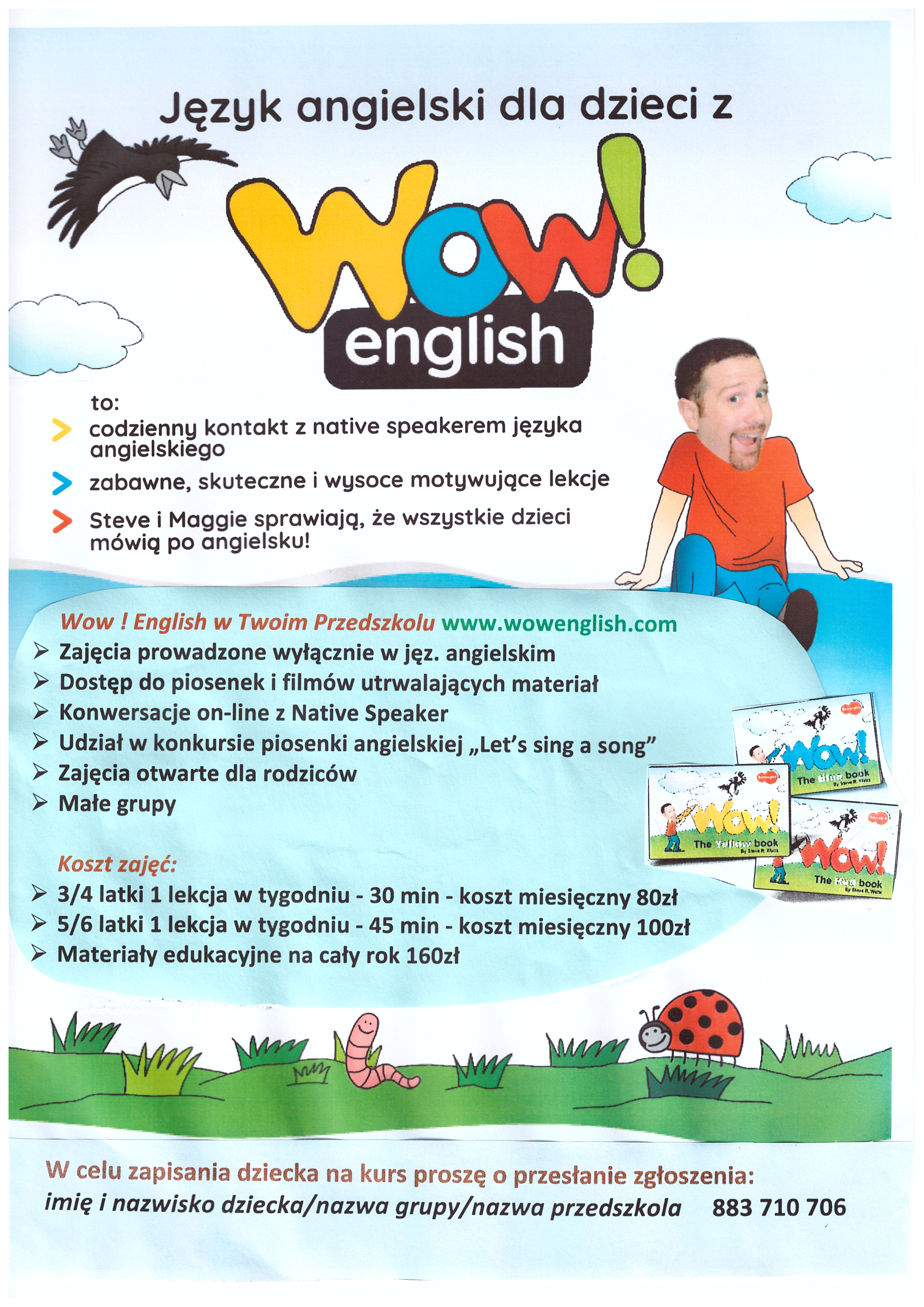 Zachęcamy Państwa do zapoznania się z ofertą dodatkowych zajęć z języka angielskiego dla dzieci. Osoby zainteresowane mogą zapisać dziecko poprzez bezpośredni kontakt z organizatorem zajęć. W przypadku utworzenia się grupy zajęcia będą się odbywać po godzinach realizacji podstawy programowej tj. po godz. 14.00. Dokładne daty oraz godziny zostaną przekazane w późniejszym terminie. Zajęcia pokazowe dla dzieci odbędą się w środę 3.09.2025 o godz. 10.30.
