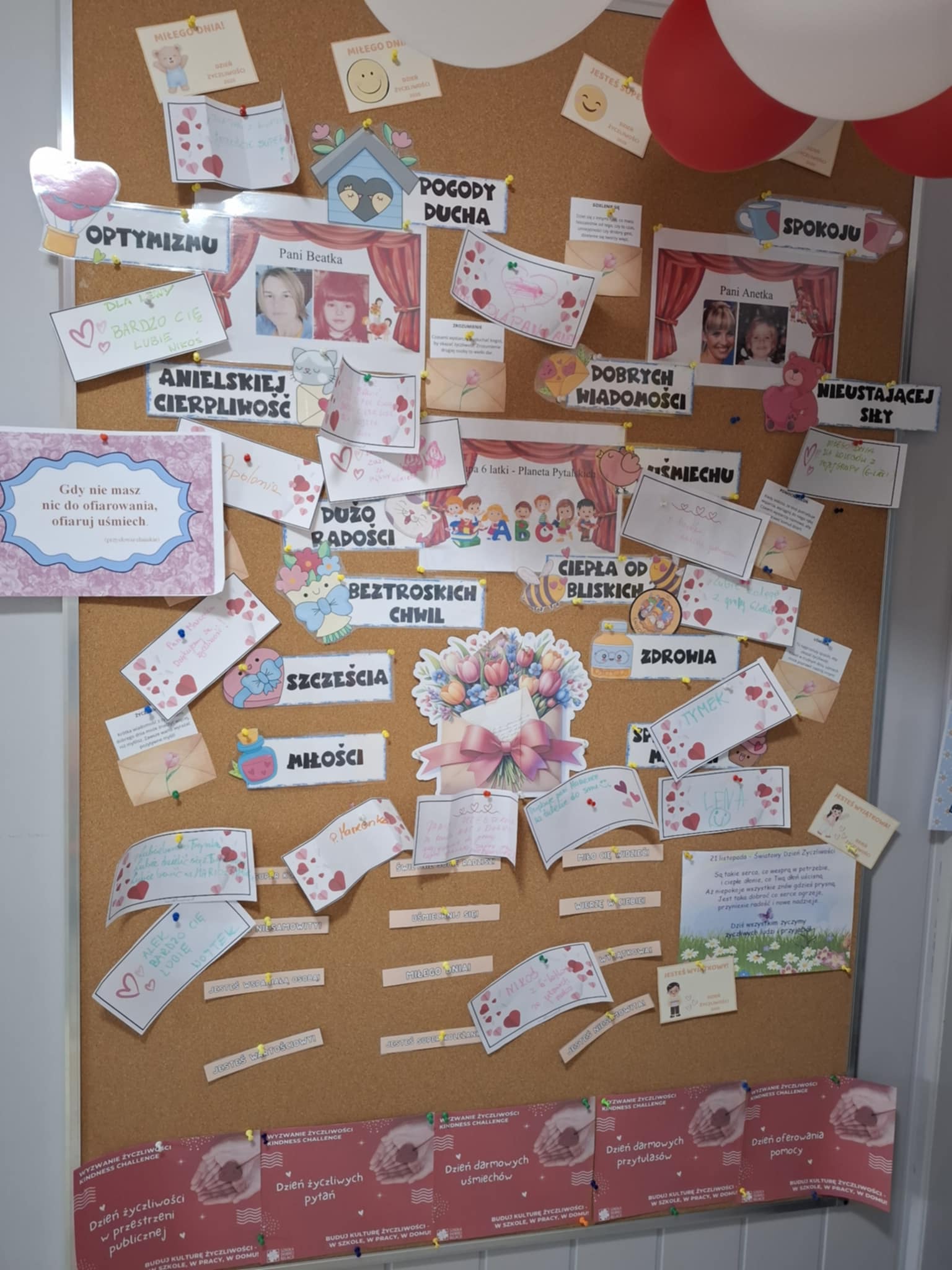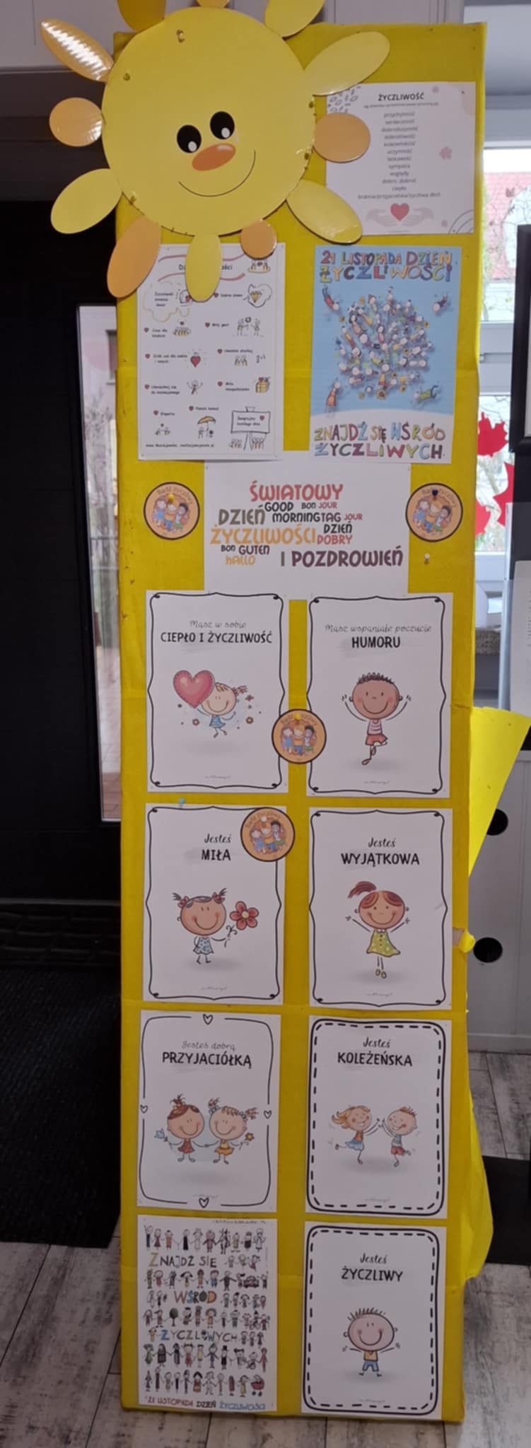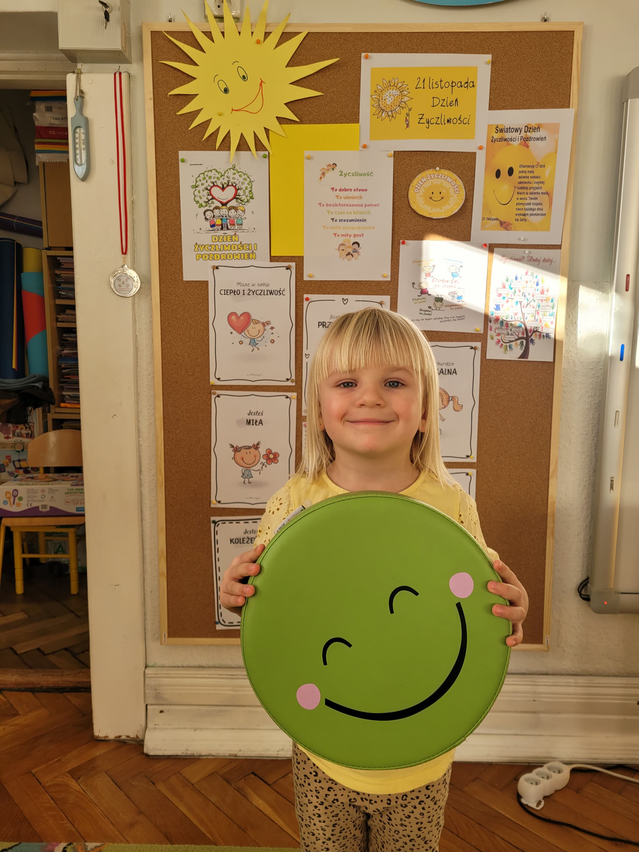Dzień Życzliwości to dzień dobrych uczynków, pozytywnej atmosfery i serdeczności. 19 listopada świętowało całe nasze przedszkole. Celebrowanie tego nietypowego święta miało na celu uświadomienie całej społeczności przedszkolnej, jak ważna jest życzliwość na co dzień, nie tylko od święta. I nie chodzi tutaj o spektakularne czyny, ale małe gesty, które czynią świat lepszym. Życzliwość kryje się w drobiazgach dnia codziennego. Nie kosztuje nas właściwie nic, a może działać cuda. Życzliwość można rozumieć na wiele różnych sposobów. Okazywanie jej można zacząć od używania tak prostych słów jak "dzień dobry". Pamiętajmy, że dobro zawsze do nas wraca, a dzięki uprzejmości , sami stajemy się szczęśliwsi. Dlatego też tak ważne są wszelkie inicjatywy podejmowane z okazji Dnia życzliwości. W naszym przedszkolu zorganizowaliśmy rodzinny joichallenge „Podejmij wyzwanie, wykonaj zadanie i spraw sobie i bliskim przyjemność”. Przygotowaliśmy tablice życzliwości –na której umieszczaliśmy miłe, pozytywne życzenia dla innych. Przeprowadziliśmy plebiscyt na najżyczliwszą osobę należącą do społeczności przedszkolnej. Tworzyliśmy plakaty, rozmawialiśmy o tym, jak okazywać sobie nawzajem dobroć, koleżeństwo i uprzejmość, a także kulturalnie odnosić się do rówieśników i dorosłych. Obdarowywaliśmy się uśmiechami, niespodziankami, uczestniczyliśmy w integracyjnych zabawach koleżeńskich. Dzień Życzliwości to była wspaniała okazja aby przypomnieć sobie, ile w naszych codziennych relacjach znaczą proste słowa: proszę, dziękuję, przepraszam, dzień dobry, miłego dnia, dobrze, że tu jesteś, a także jak cudowną i ciepłą atmosferę wprowadza serdeczny uśmiech na twarzy. Dzień Życzliwości to doskonała okazja, aby wprowadzić najmłodsze dzieci w przedszkolu do świata pozytywnych wartości, takich jak empatia, życzliwość i przyjaźń. Organizowanie zajęć tematycznych pomaga dzieciom lepiej zrozumieć, jak ważne jest okazywanie uprzejmości, a także uczy je, jak małe gesty mogą sprawić komuś radość. Dzięki różnorodnym aktywnościom dzieci mogły zrozumieć, jak ważne jest bycie życzliwym i wspierającym. To doświadczenie na pewno na długo pozostanie w ich pamięci, a zasiane ziarna życzliwości będą owocować w przyszłości.