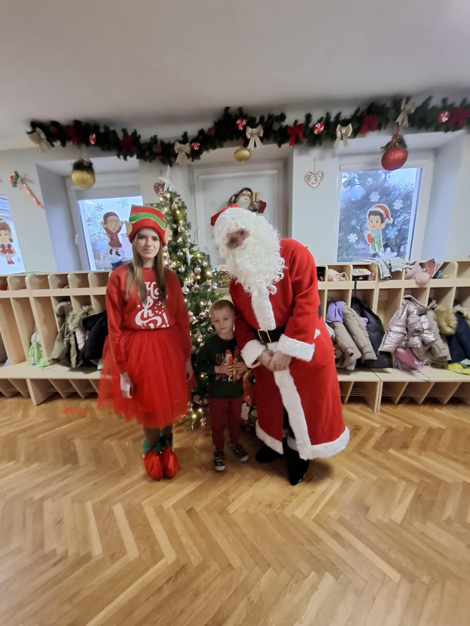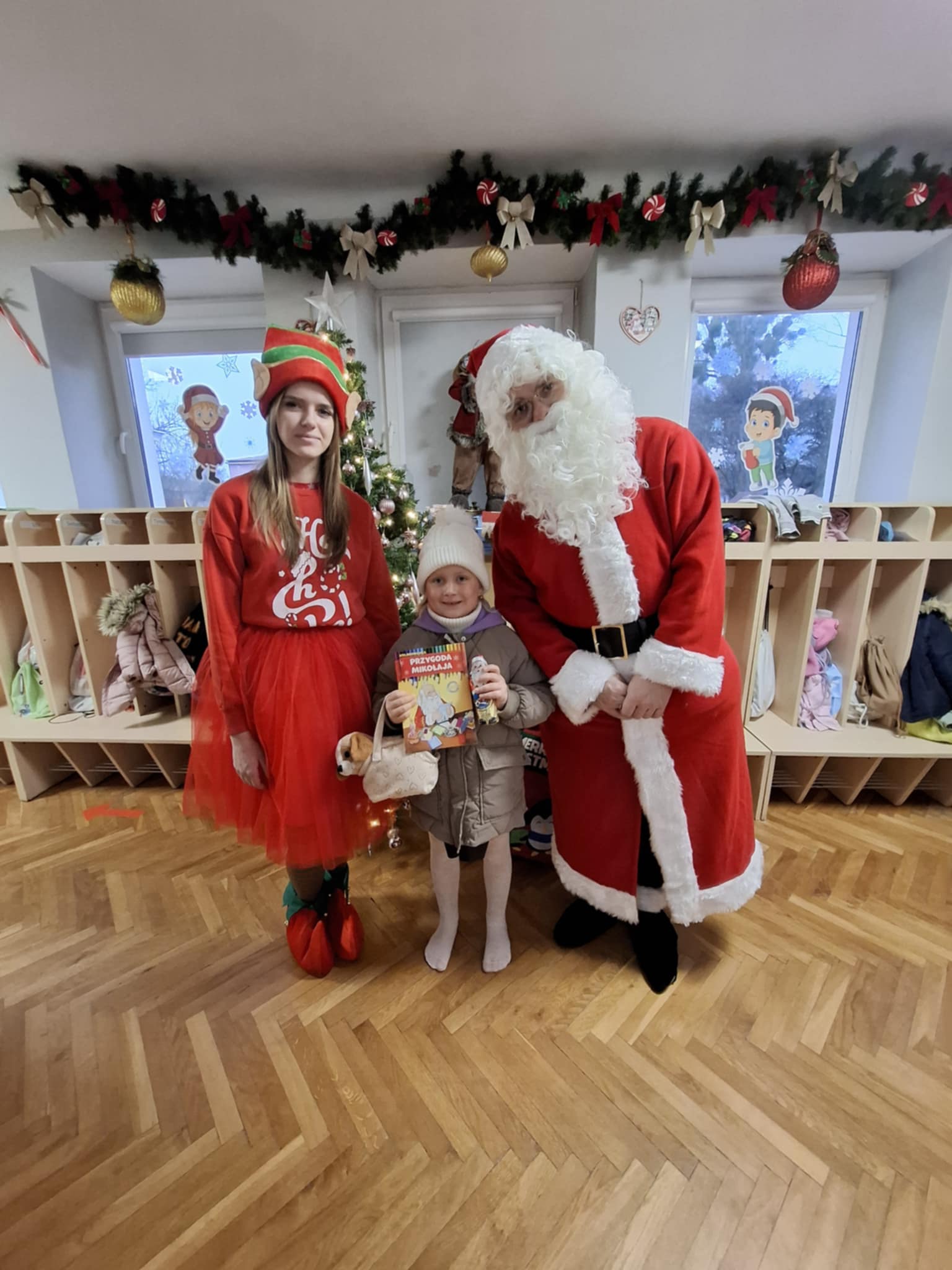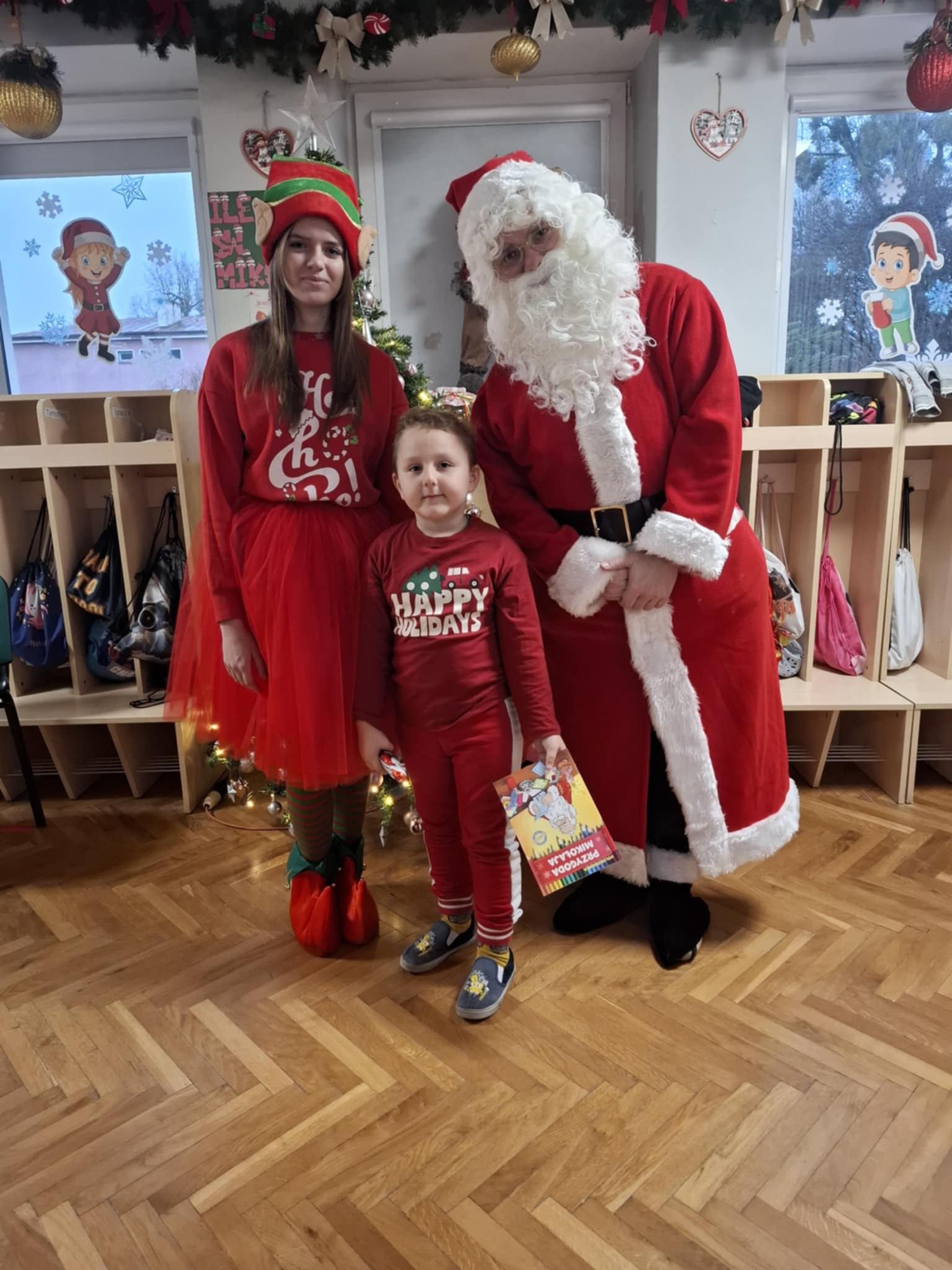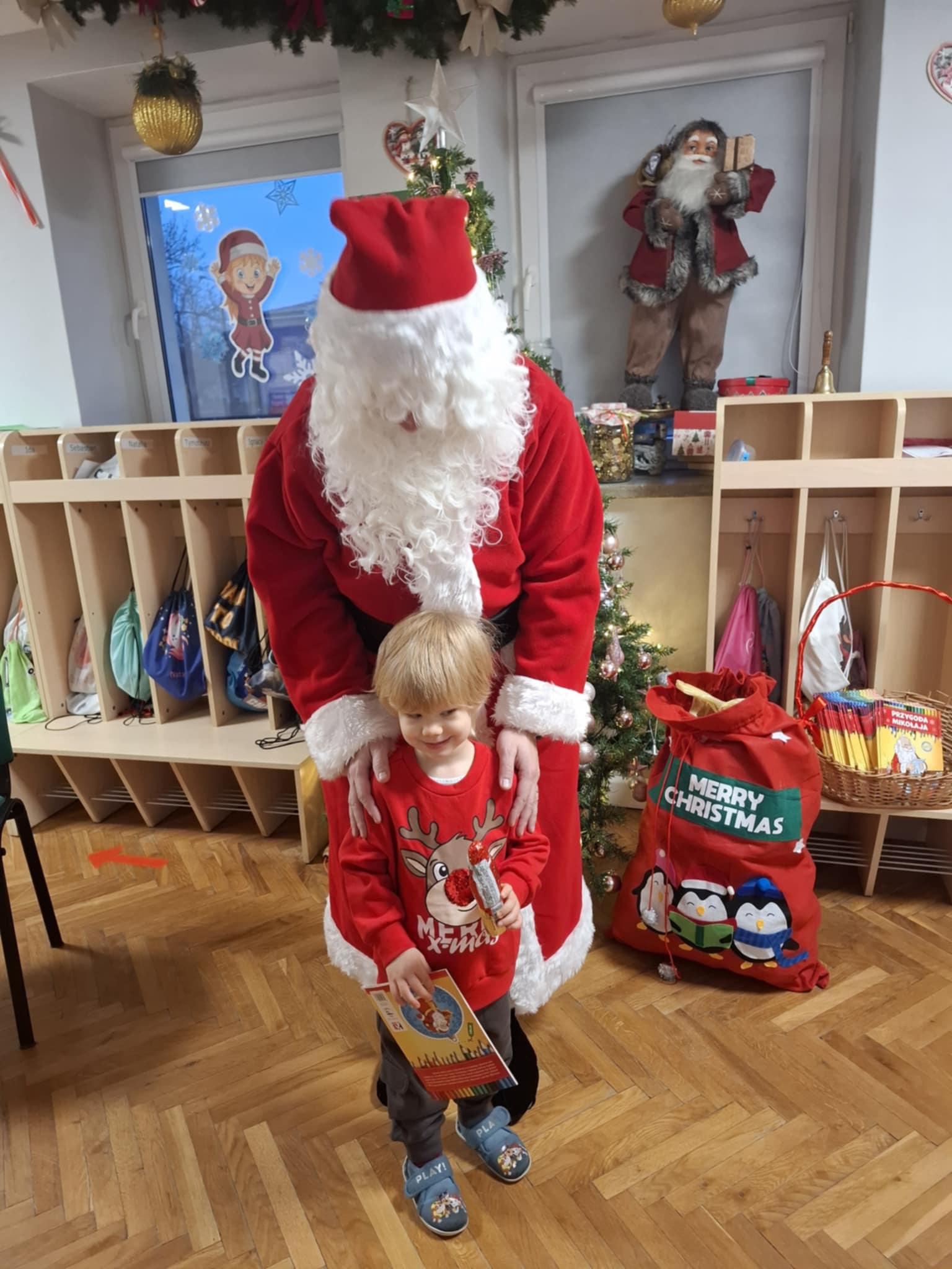 Dzisiaj rano odwiedził nas Święty Mikołaj wraz z Elfem. Dzieci miały okazję zrobić sobie pamiątkowe zdjęcie. Na wszystkie dzieci czekała również miła niespodzianka - książeczka i czekoladka.