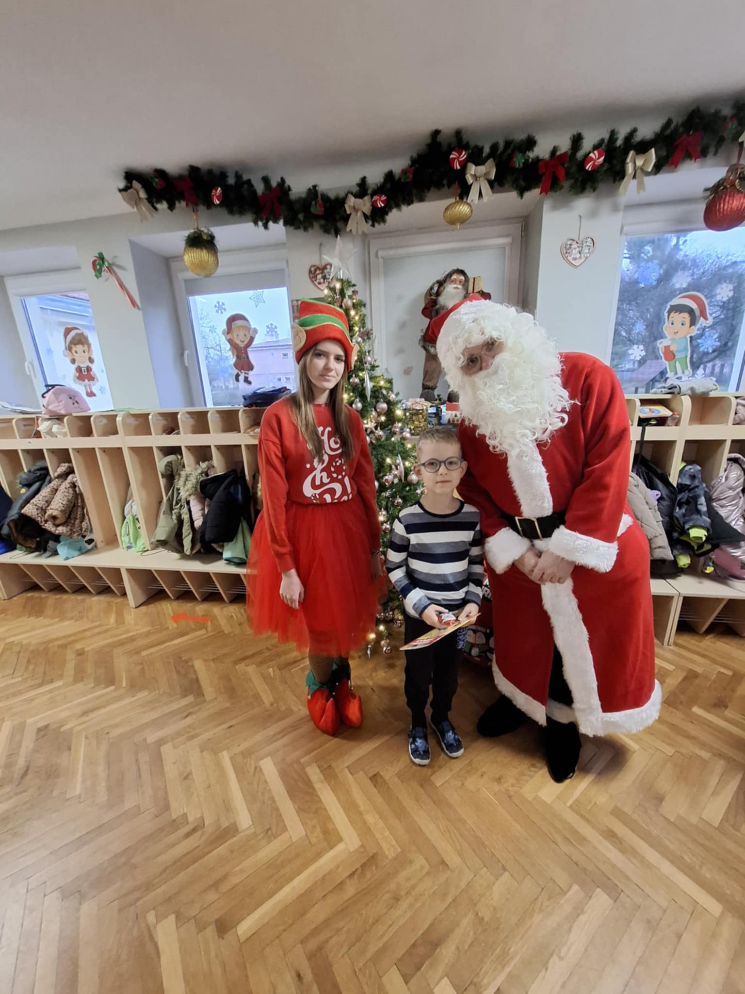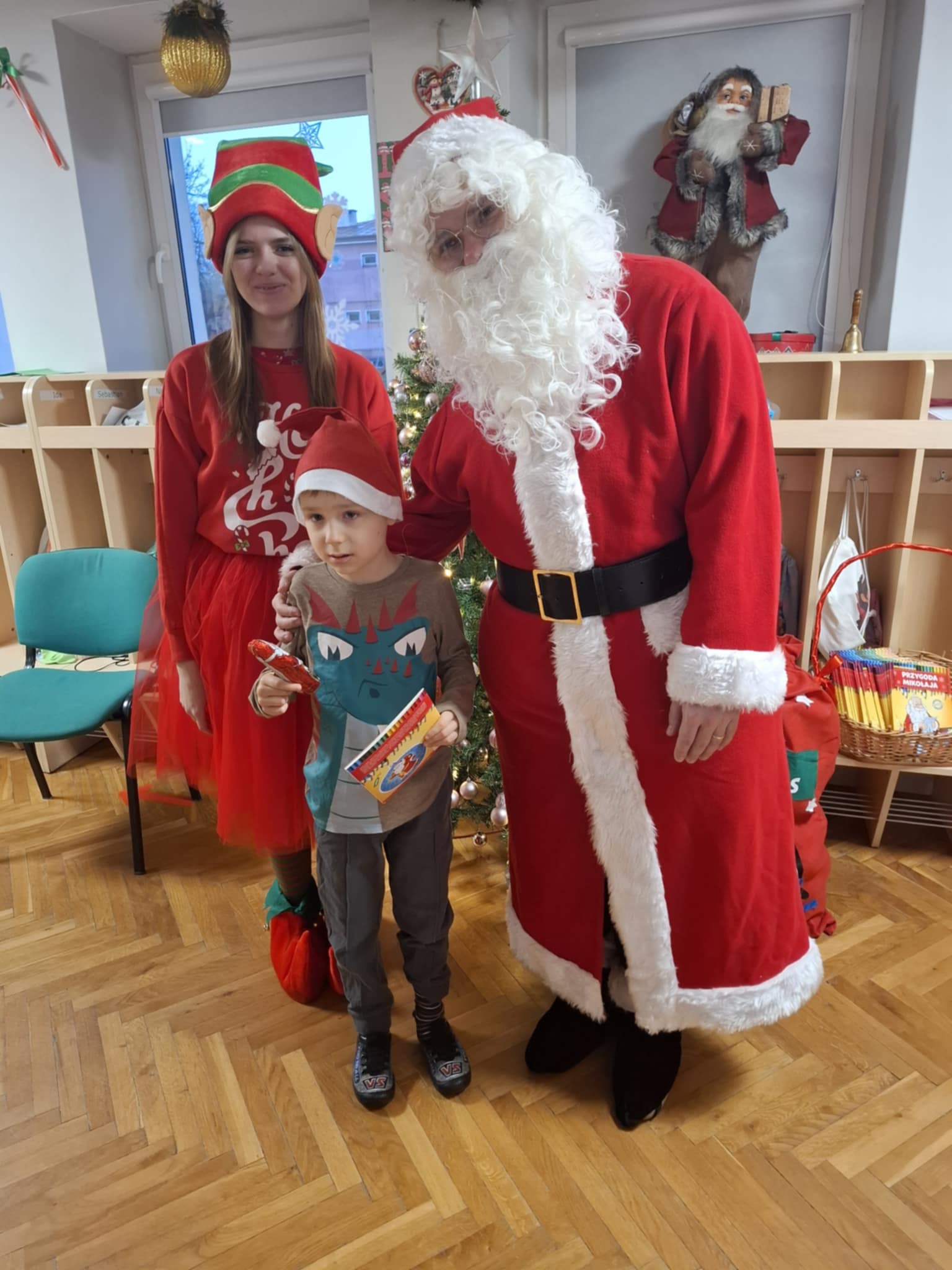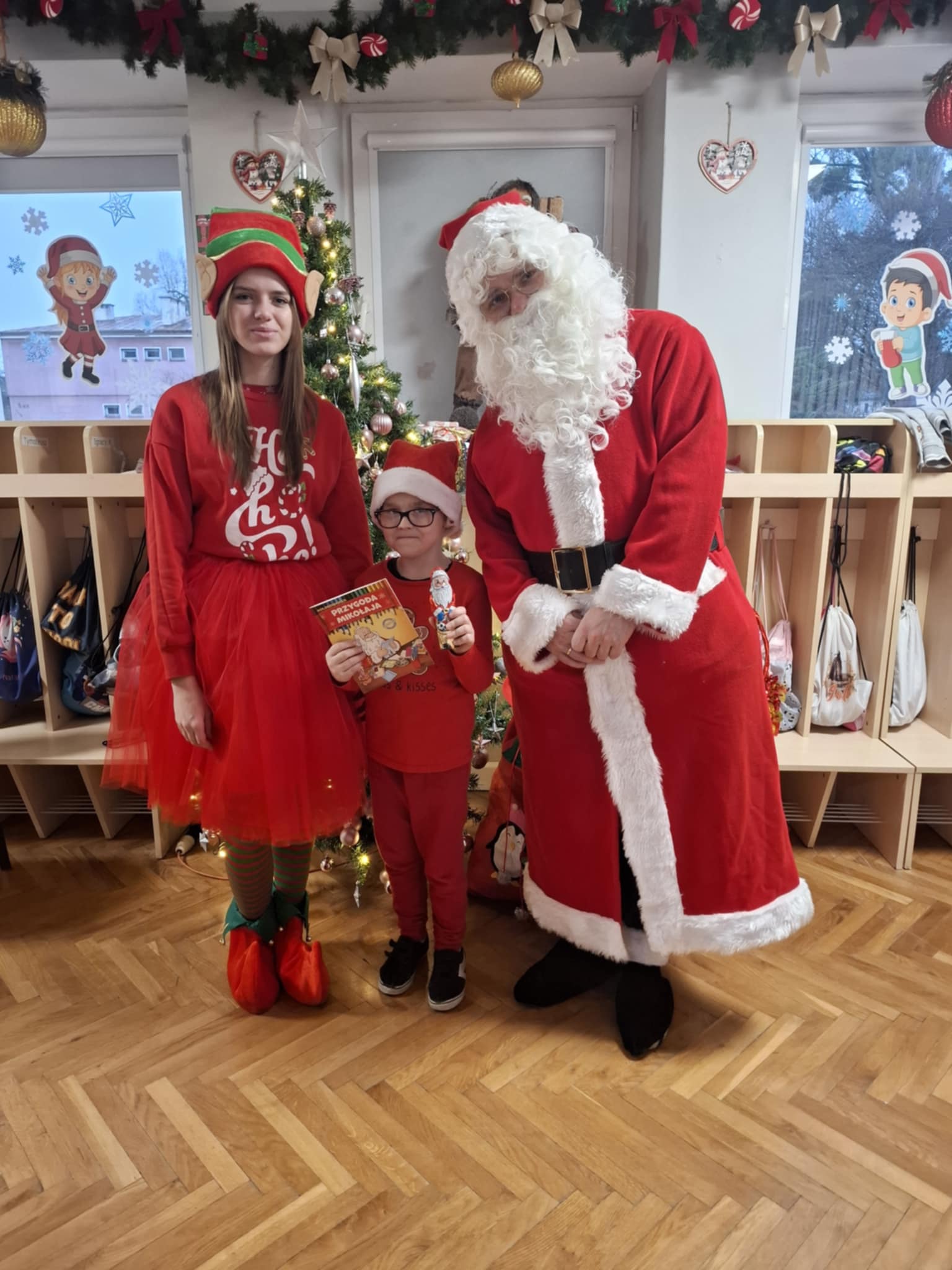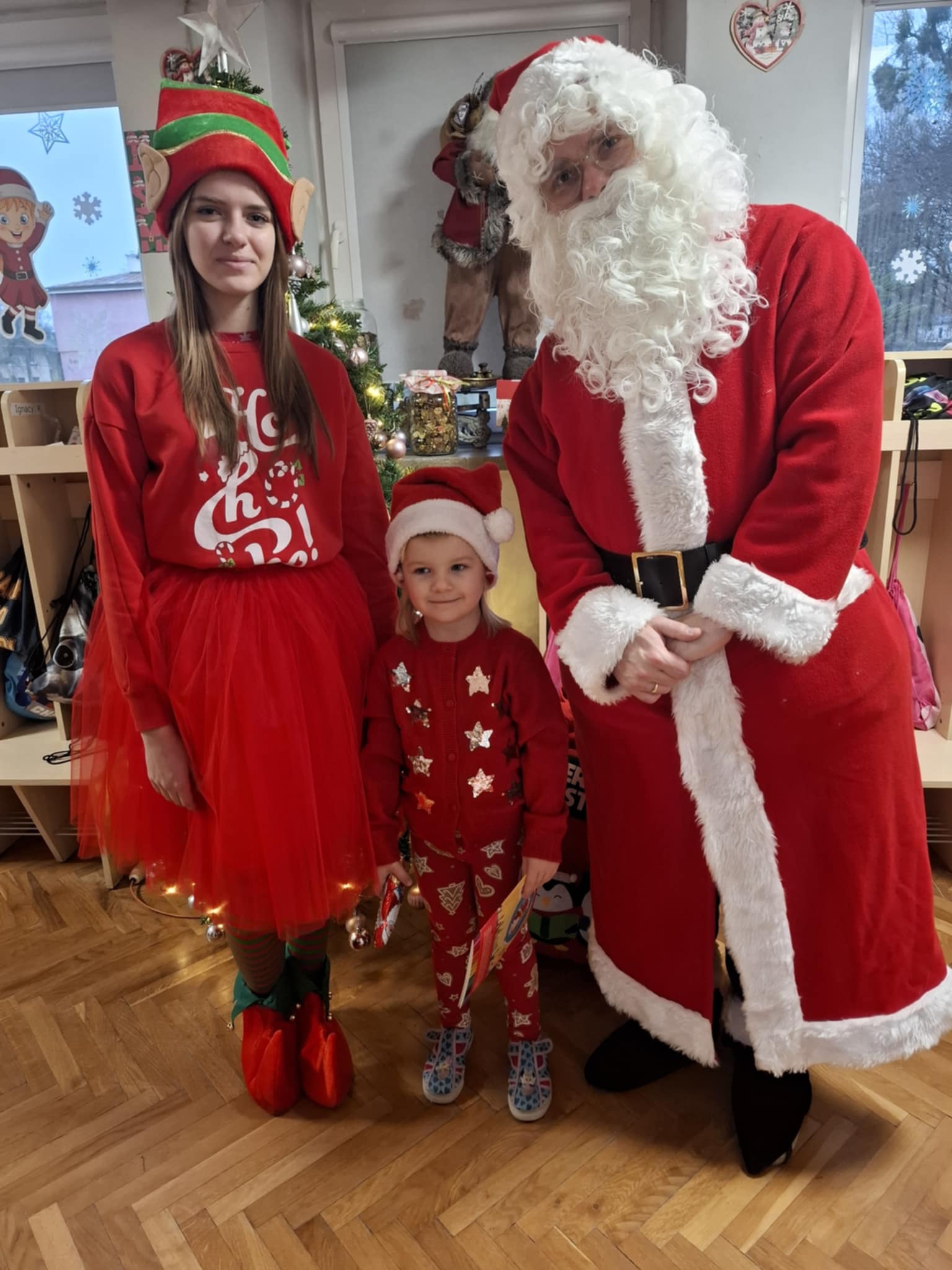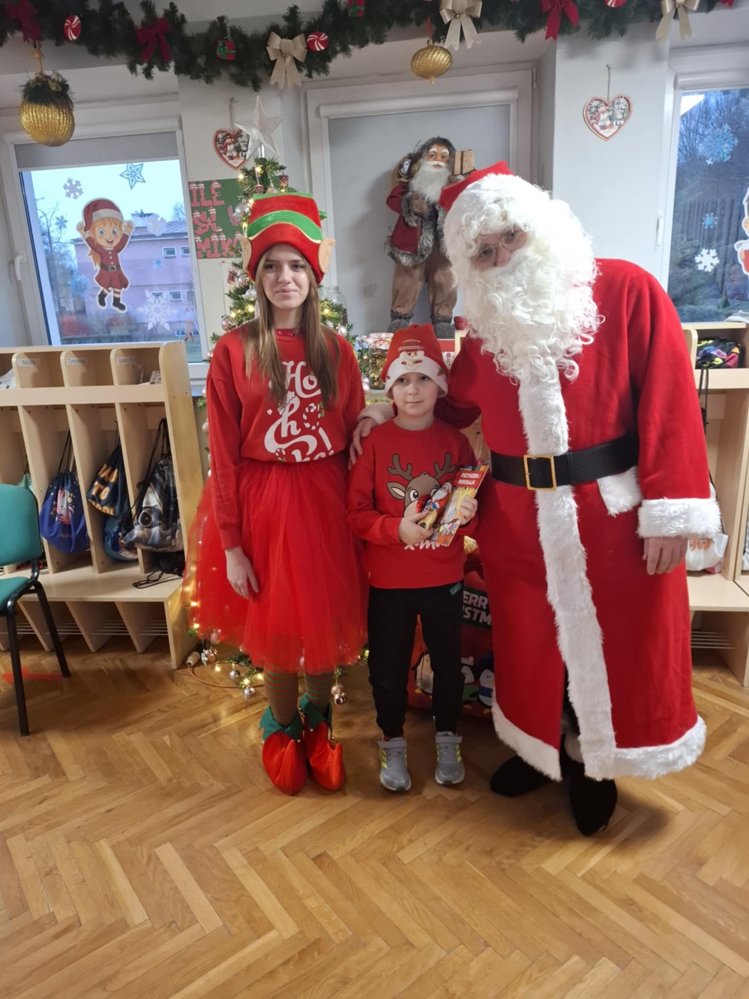 Dzisiaj rano odwiedził nas Święty Mikołaj wraz z Elfem. Dzieci miały okazję zrobić sobie pamiątkowe zdjęcie. Na wszystkie dzieci czekała również miła niespodzianka - książeczka i czekoladka.