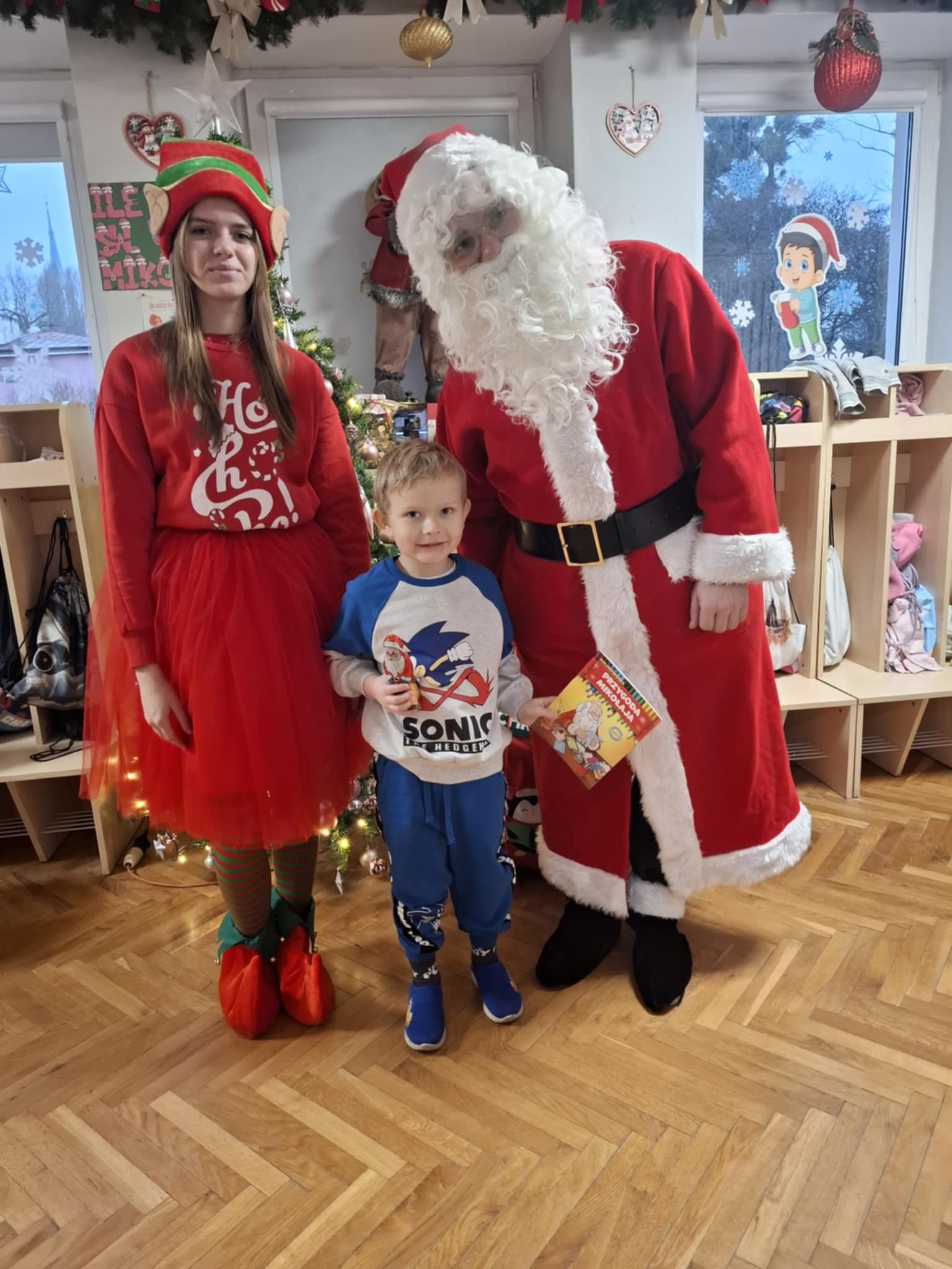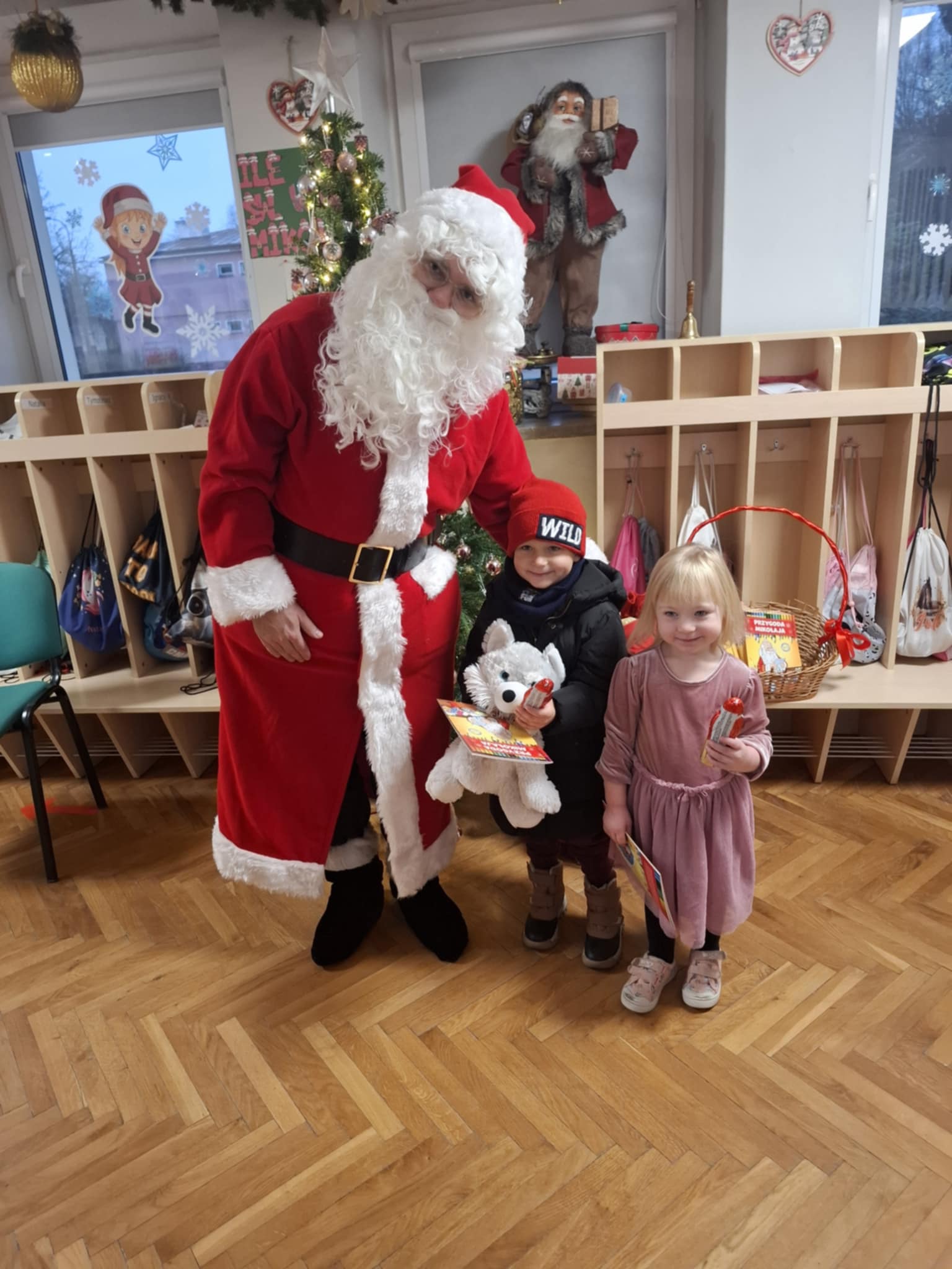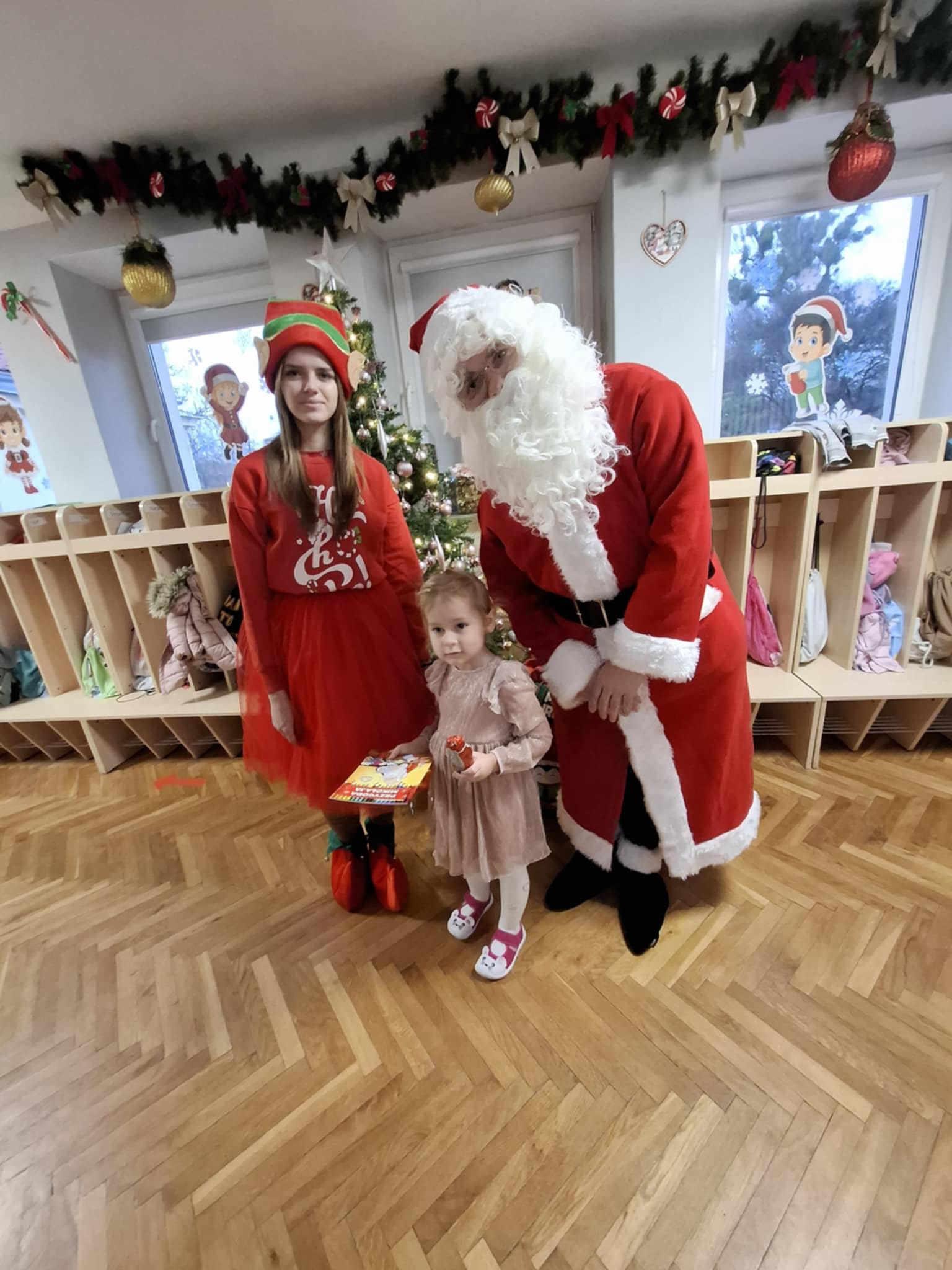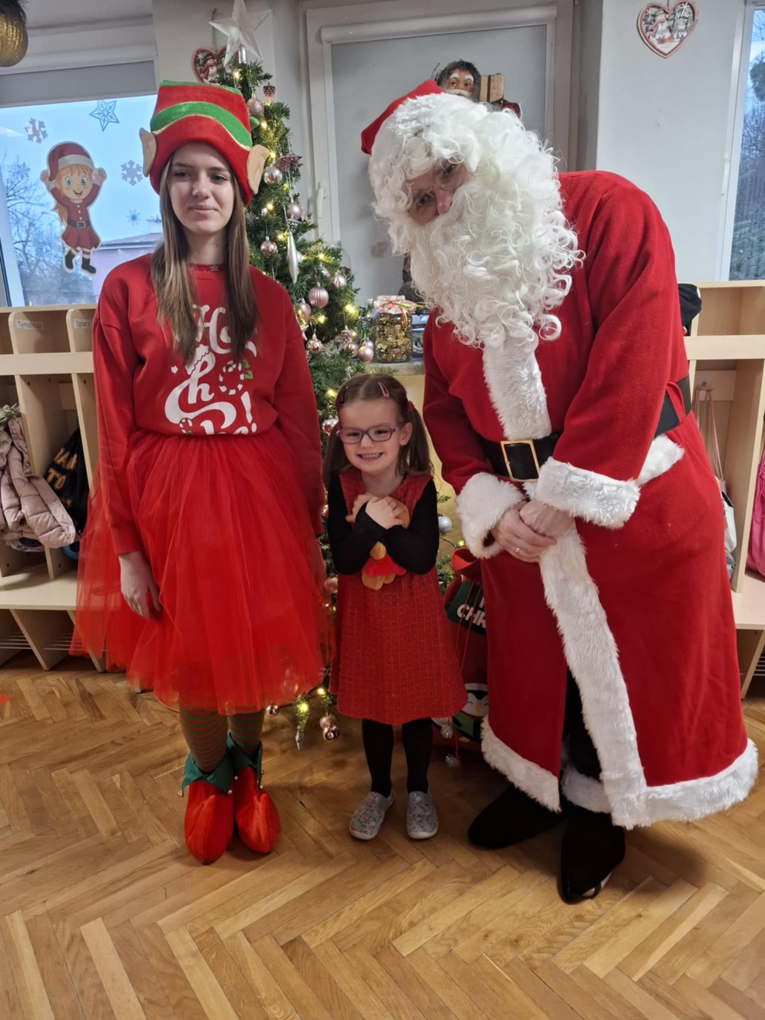 Dzisiaj rano odwiedził nas Święty Mikołaj wraz z Elfem. Dzieci miały okazję zrobić sobie pamiątkowe zdjęcie. Na wszystkie dzieci czekała również miła niespodzianka - książeczka i czekoladka.