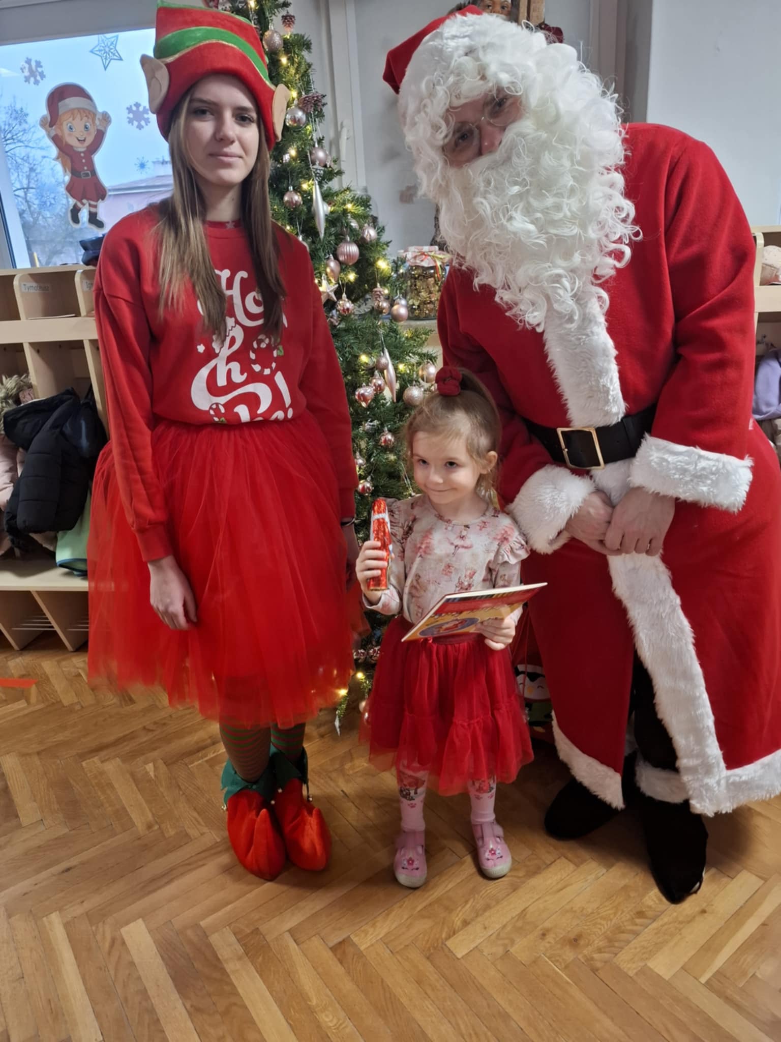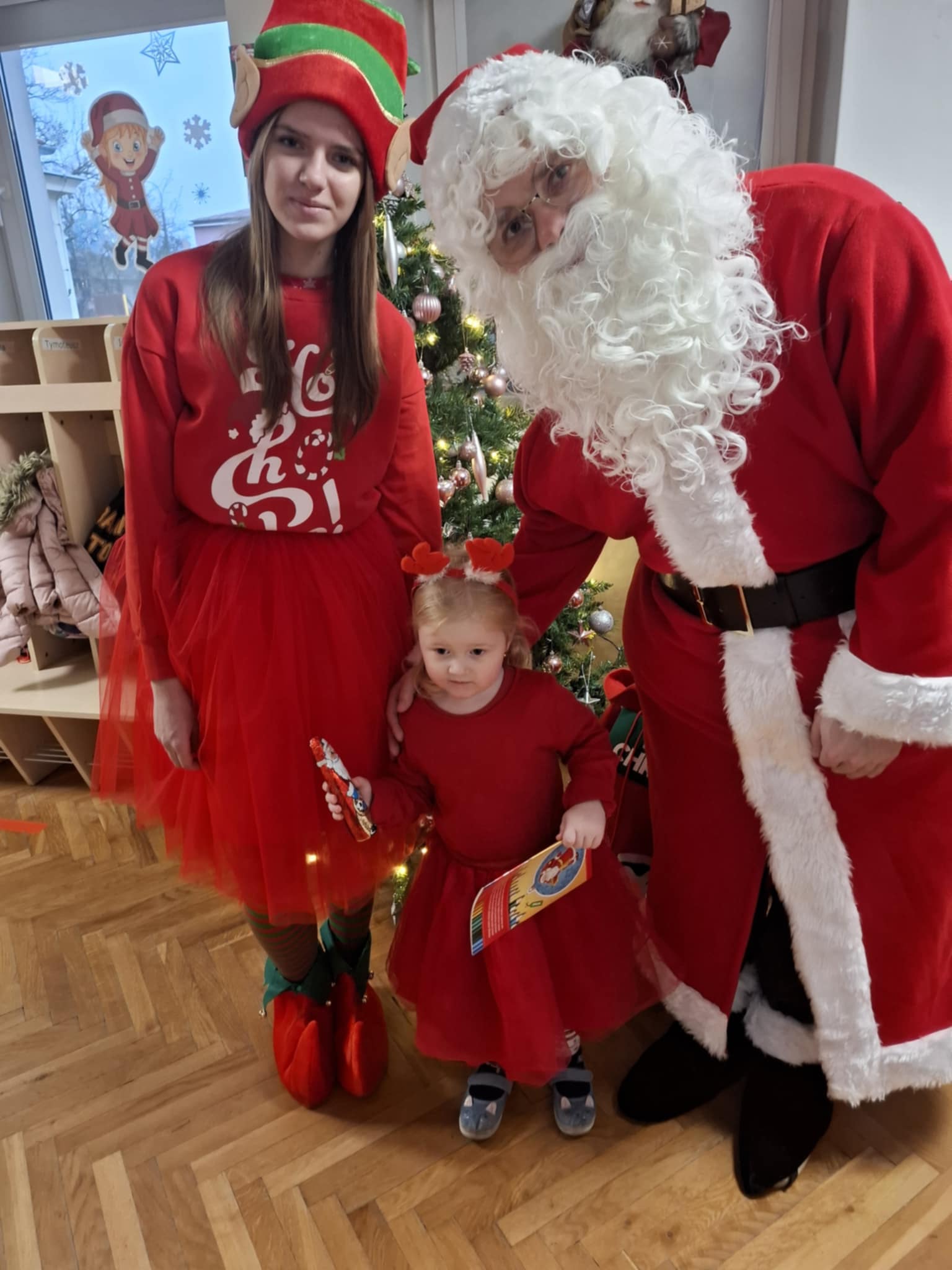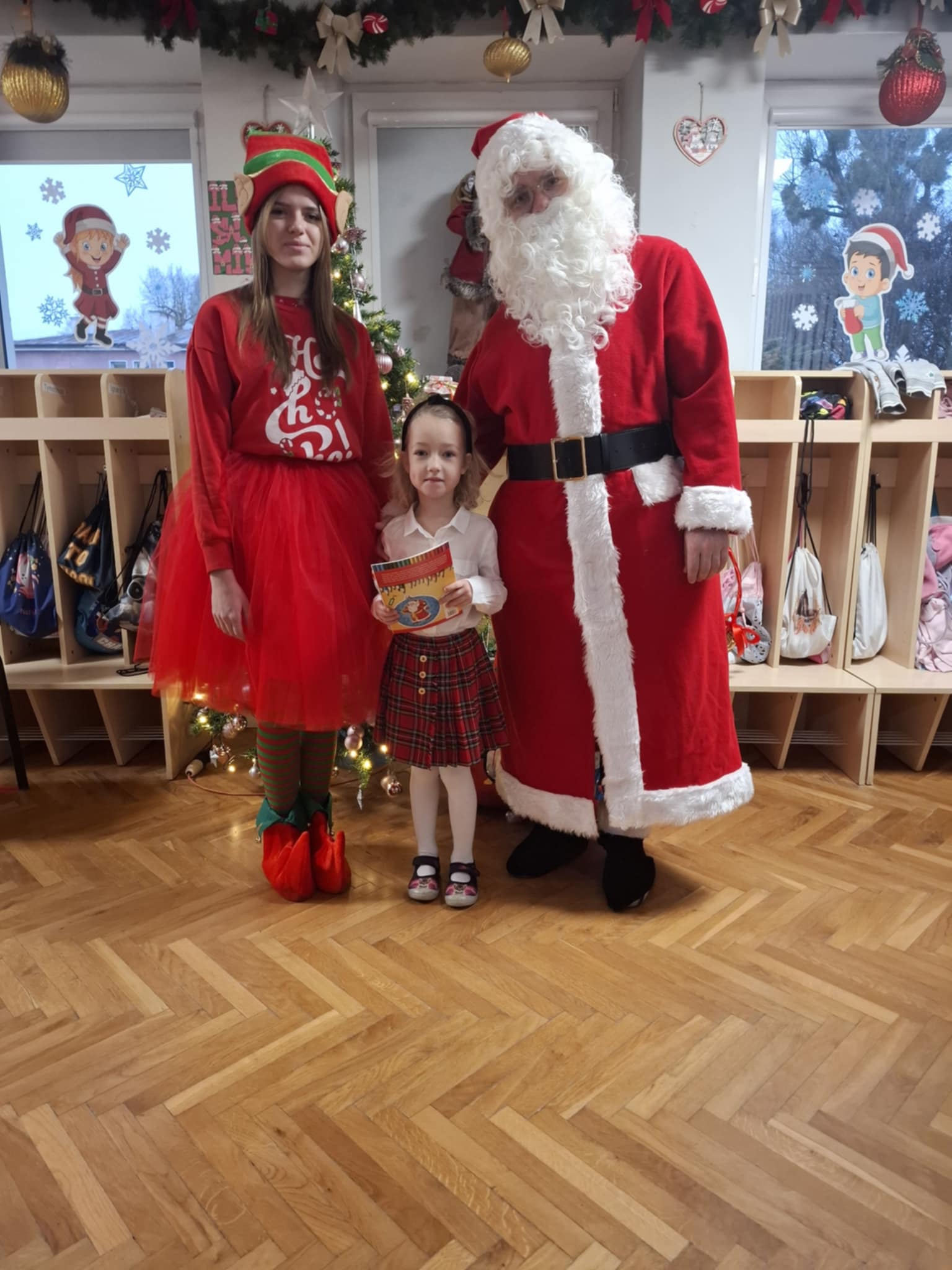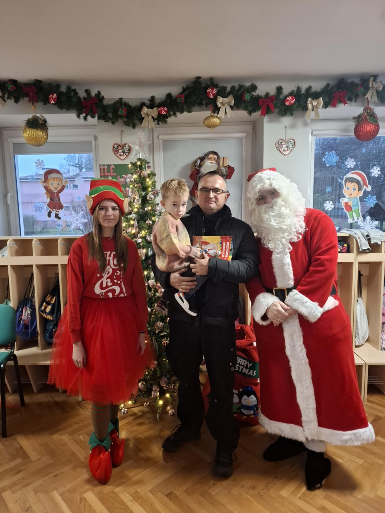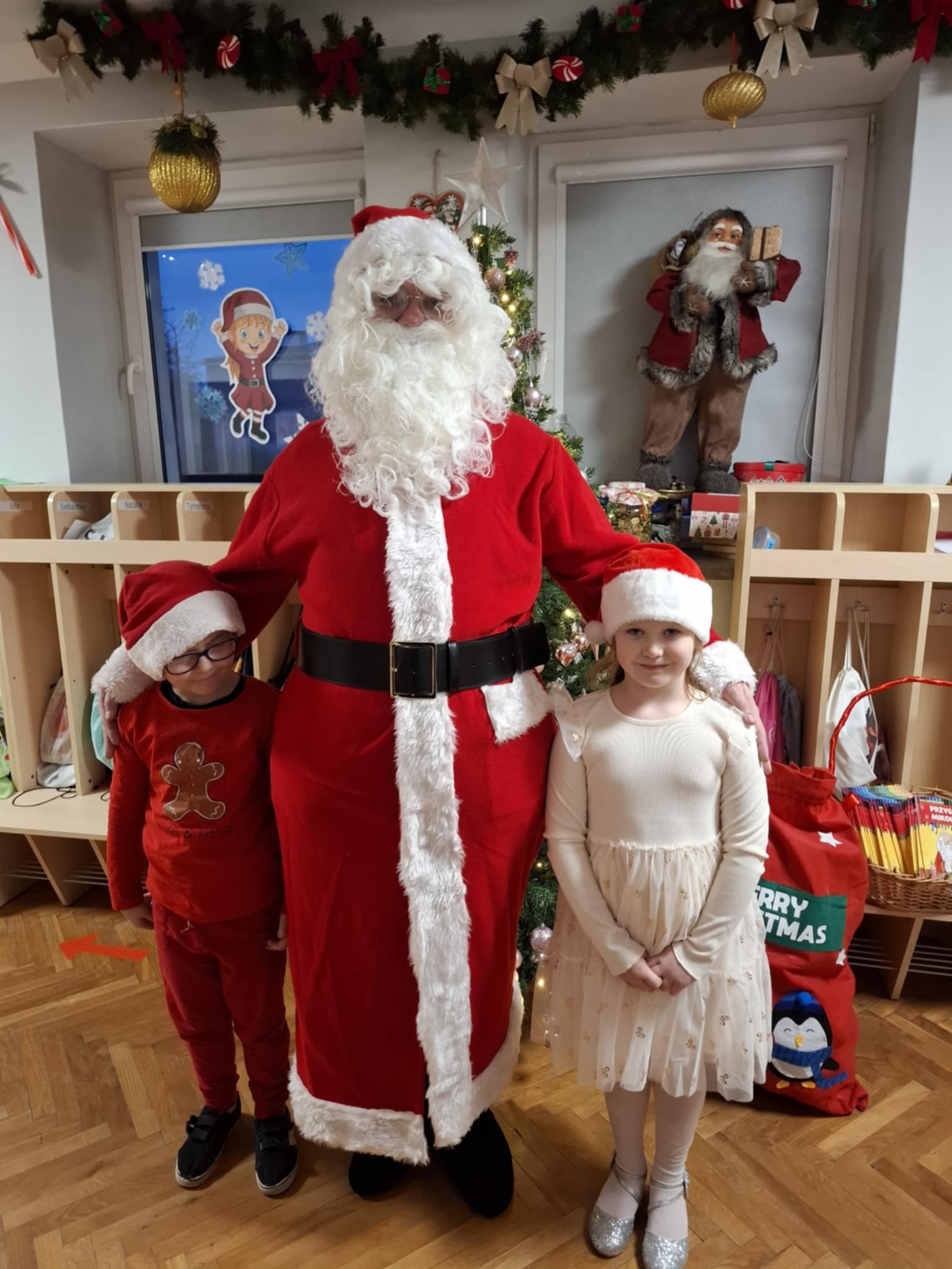 Dzisiaj rano odwiedził nas Święty Mikołaj wraz z Elfem. Dzieci miały okazję zrobić sobie pamiątkowe zdjęcie. Na wszystkie dzieci czekała również miła niespodzianka - książeczka i czekoladka.