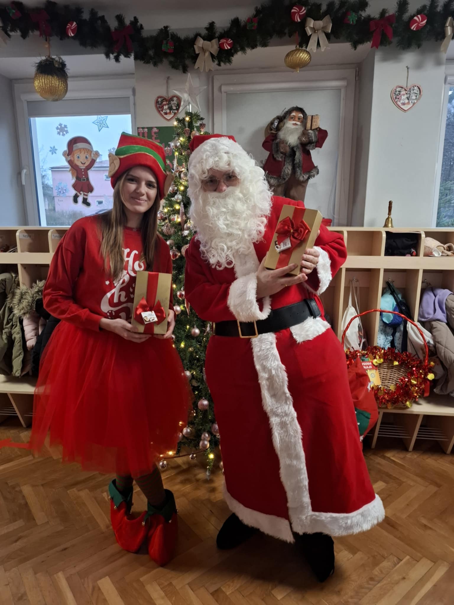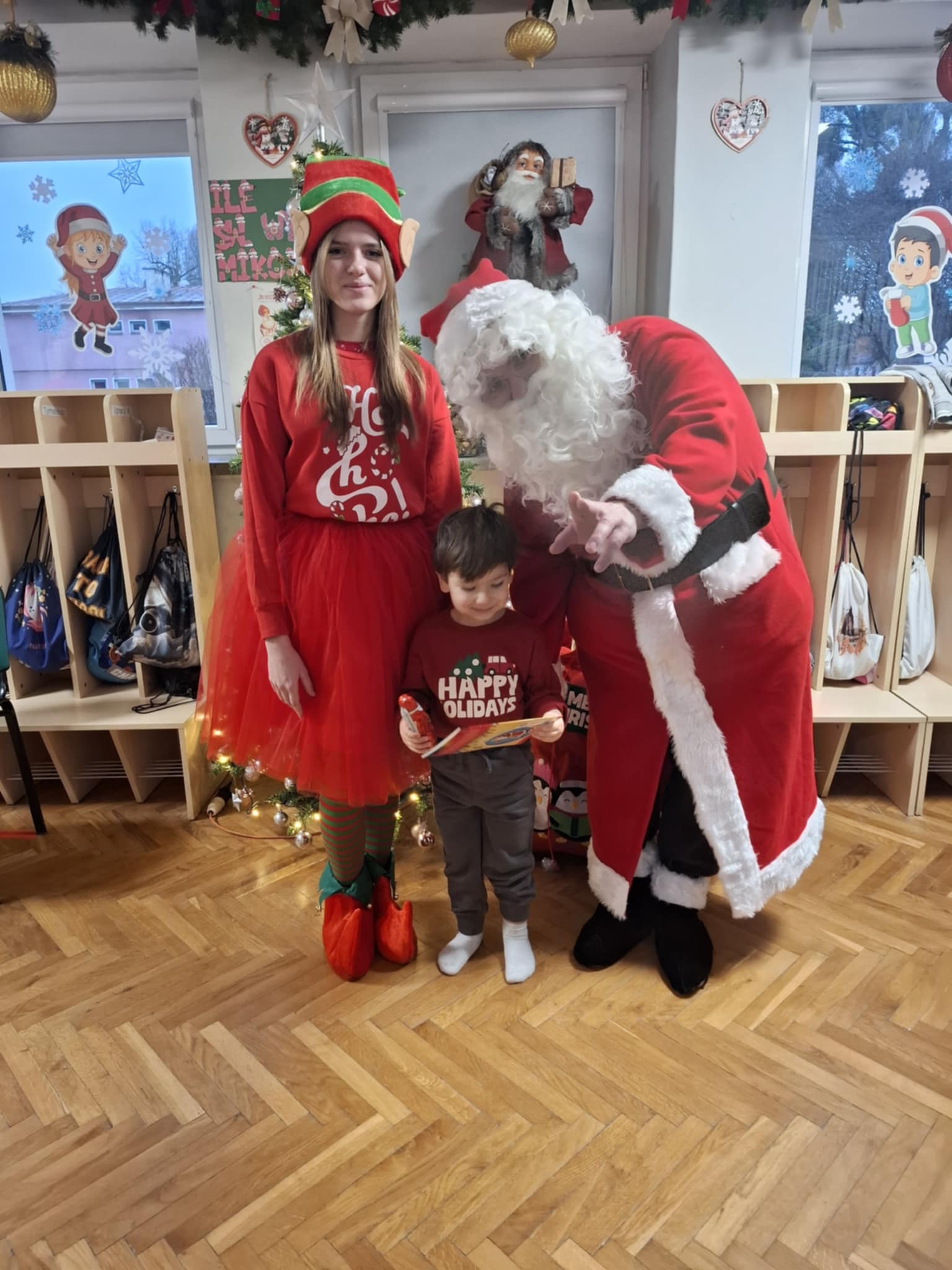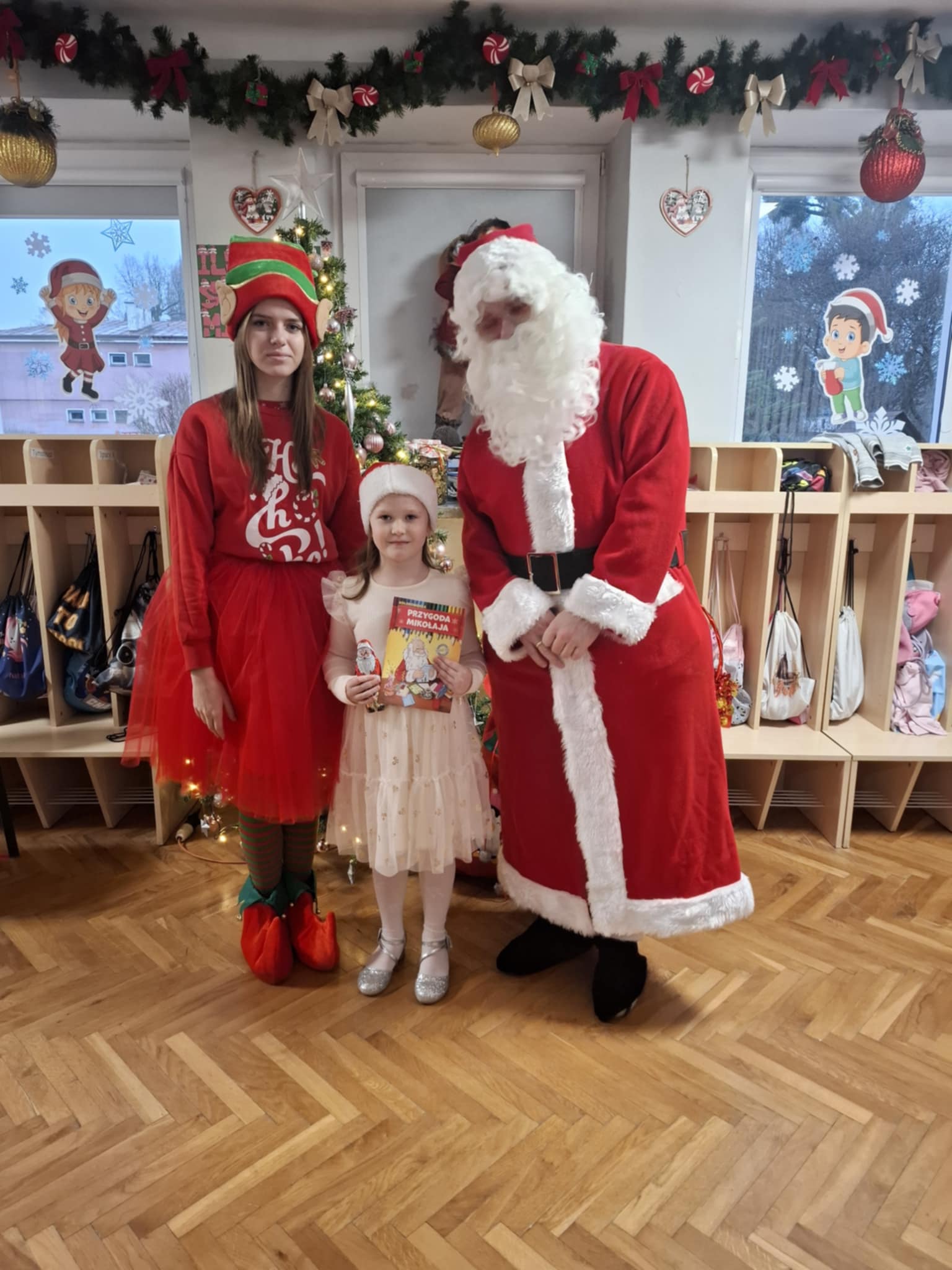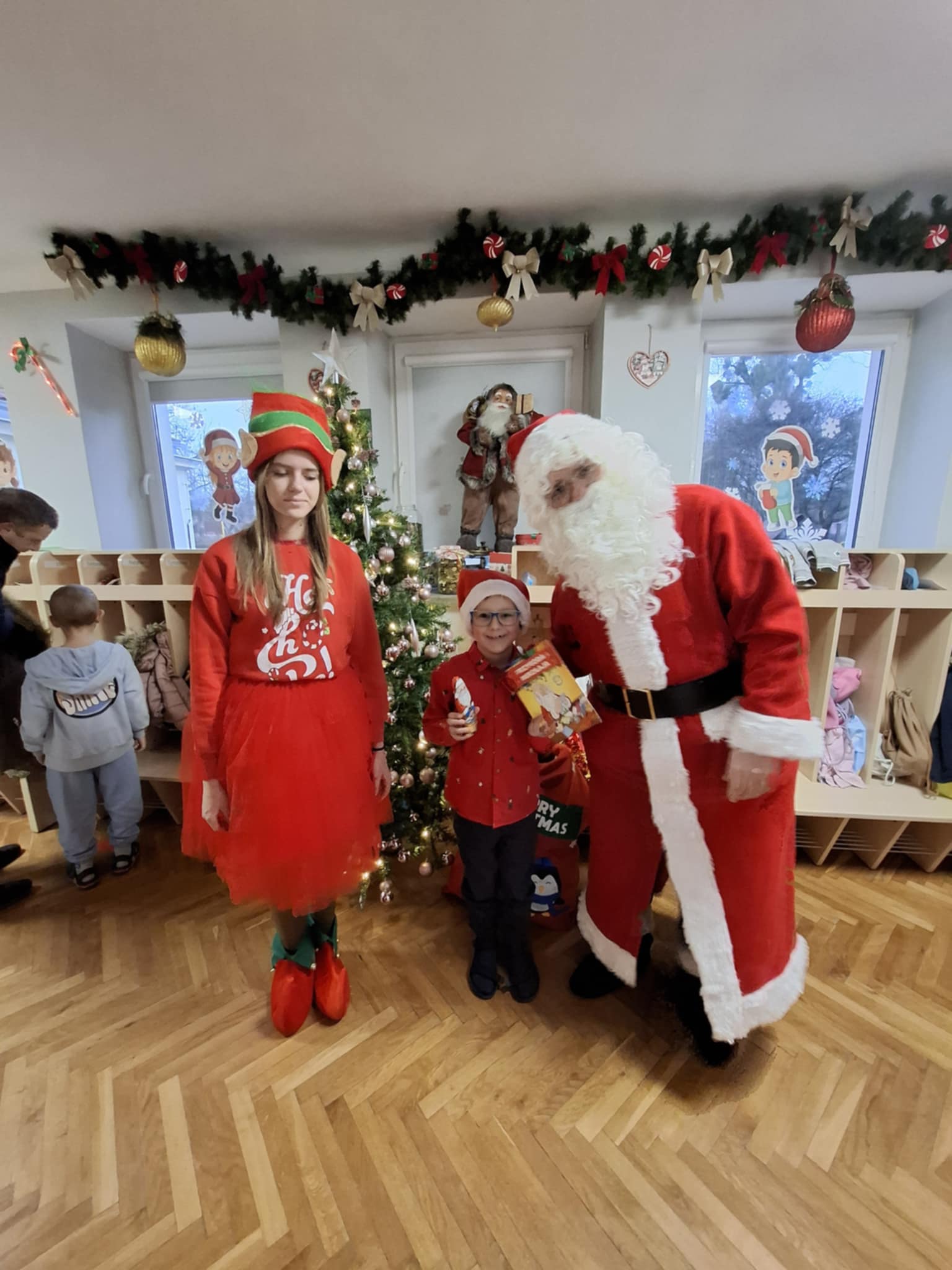 Dzisiaj rano odwiedził nas Święty Mikołaj wraz z Elfem. Dzieci miały okazję zrobić sobie pamiątkowe zdjęcie. Na wszystkie dzieci czekała również miła niespodzianka - książeczka i czekoladka.