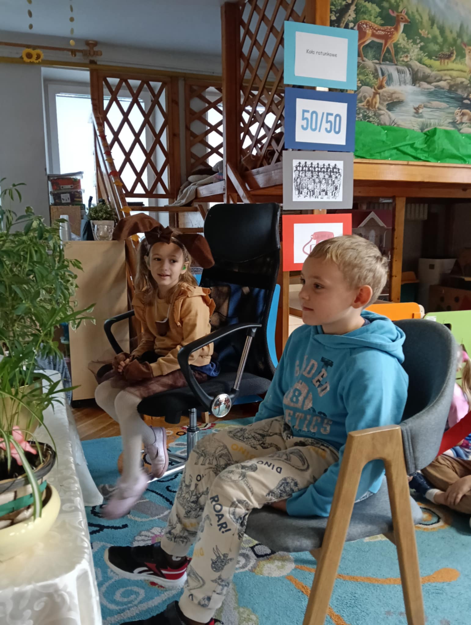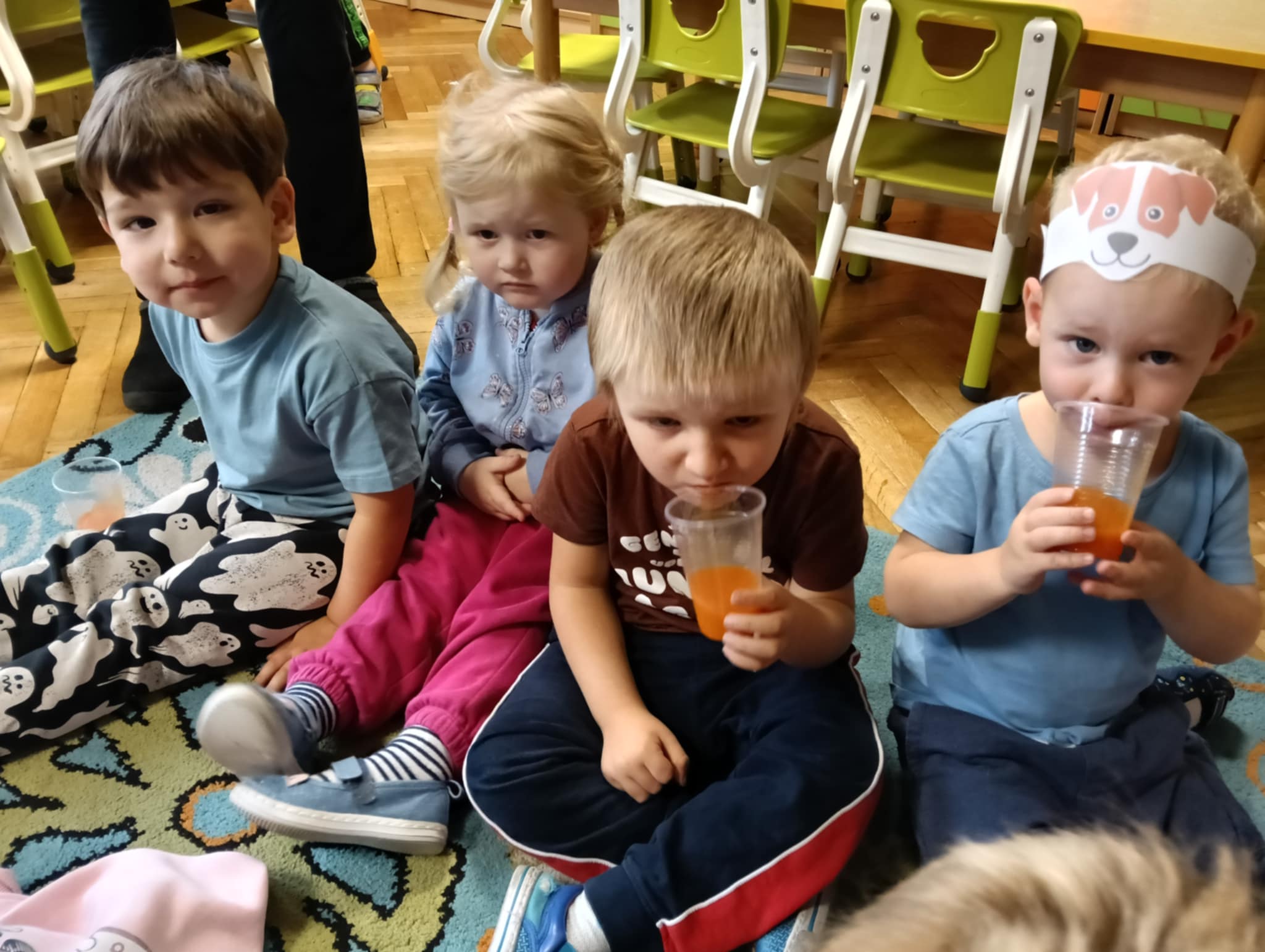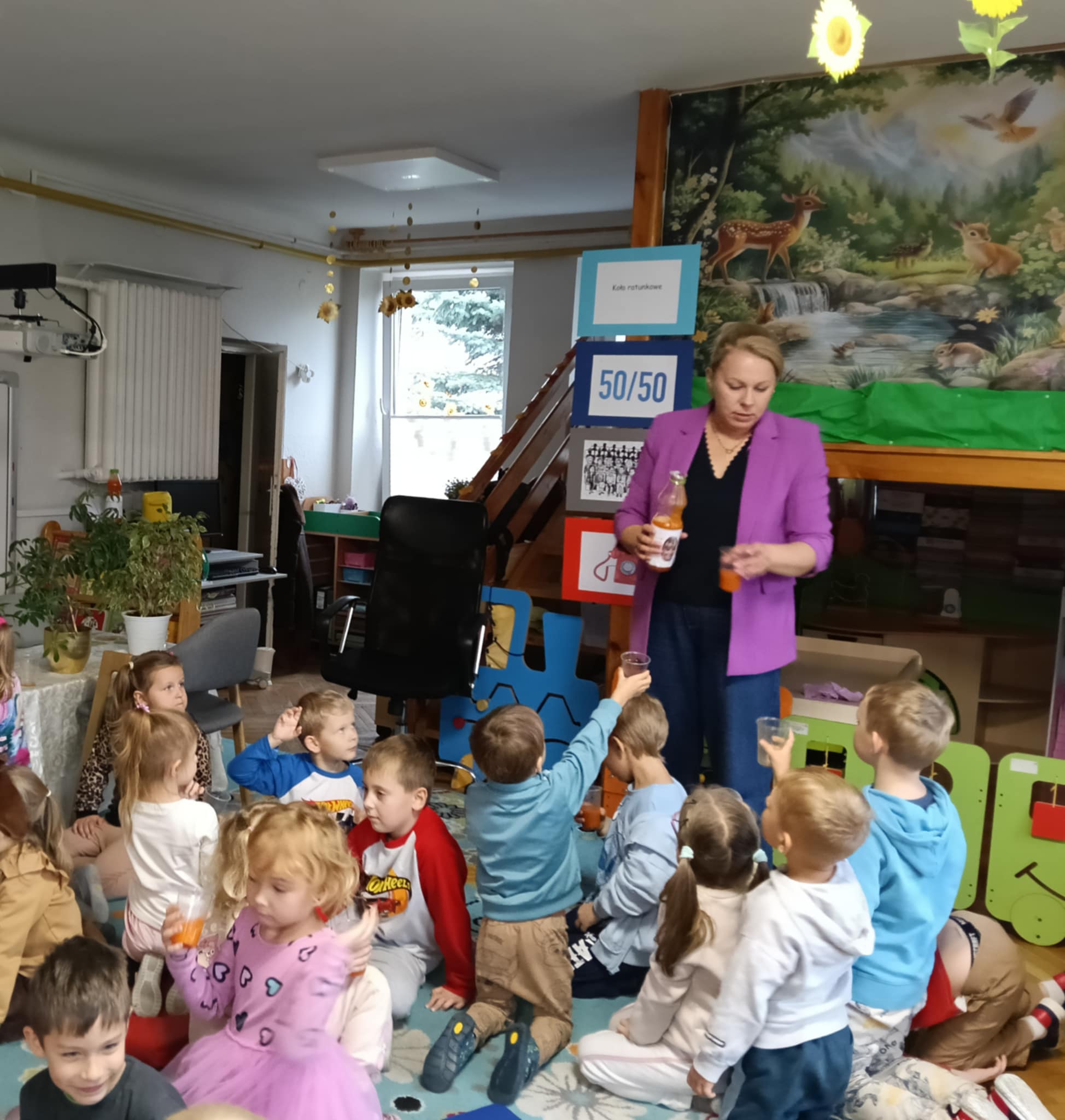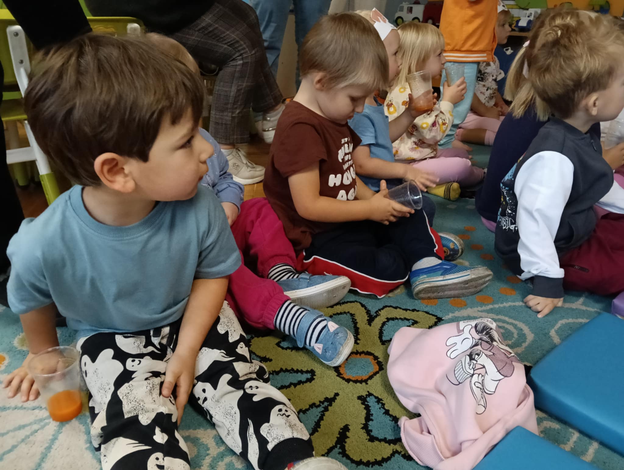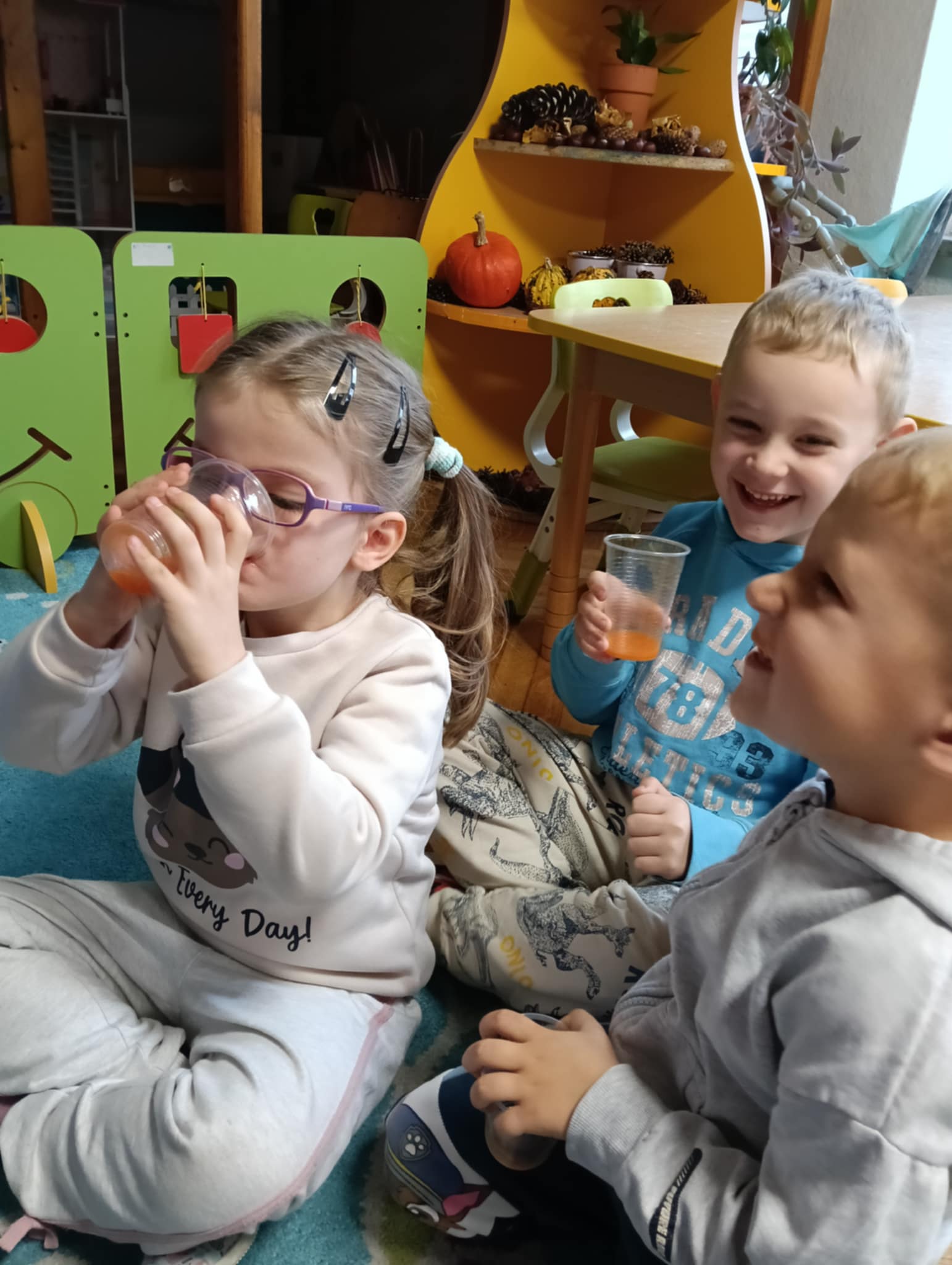 Dnia 24 października nasze przedszkolaki wzięły udział w wyjątkowym wydarzeniu promującym zdrowe odżywianie "Postaw na zdrowie" - czyli teleturniej z Paniami Anetką i Asią. Quiz ten miał na celu kształtowanie postaw prozdrowotnych i promowanie zdrowego stylu życia. W tym dniu było naprawdę wesoło, dzieci odpowiadały na pytania o zdrowiu, słuchały muzyki, zdobywały punkty w postaci owoców za prawidłowe odpowiedzi i piły eliksir zdrowia, który wyjątkowo dodawał im siły i rozjaśniał umysł do udzielania prawidłowych odpowiedzi. W ostateczności dzieci mogły skorzystać z koła ratunkowego w postaci telefonu do Pani Dyrektor, którego użyły tylko raz. Zabawa naprawdę była świetna!