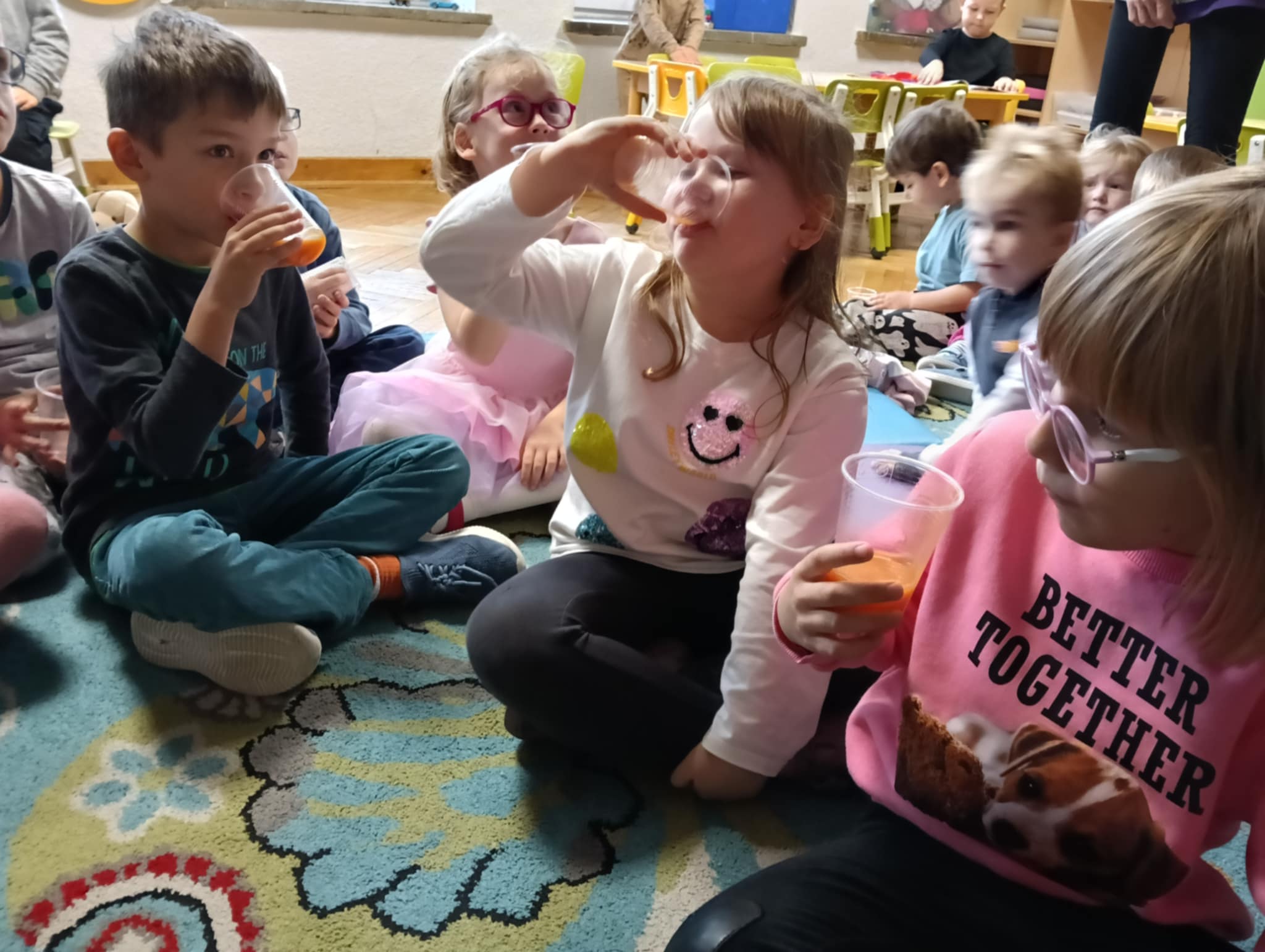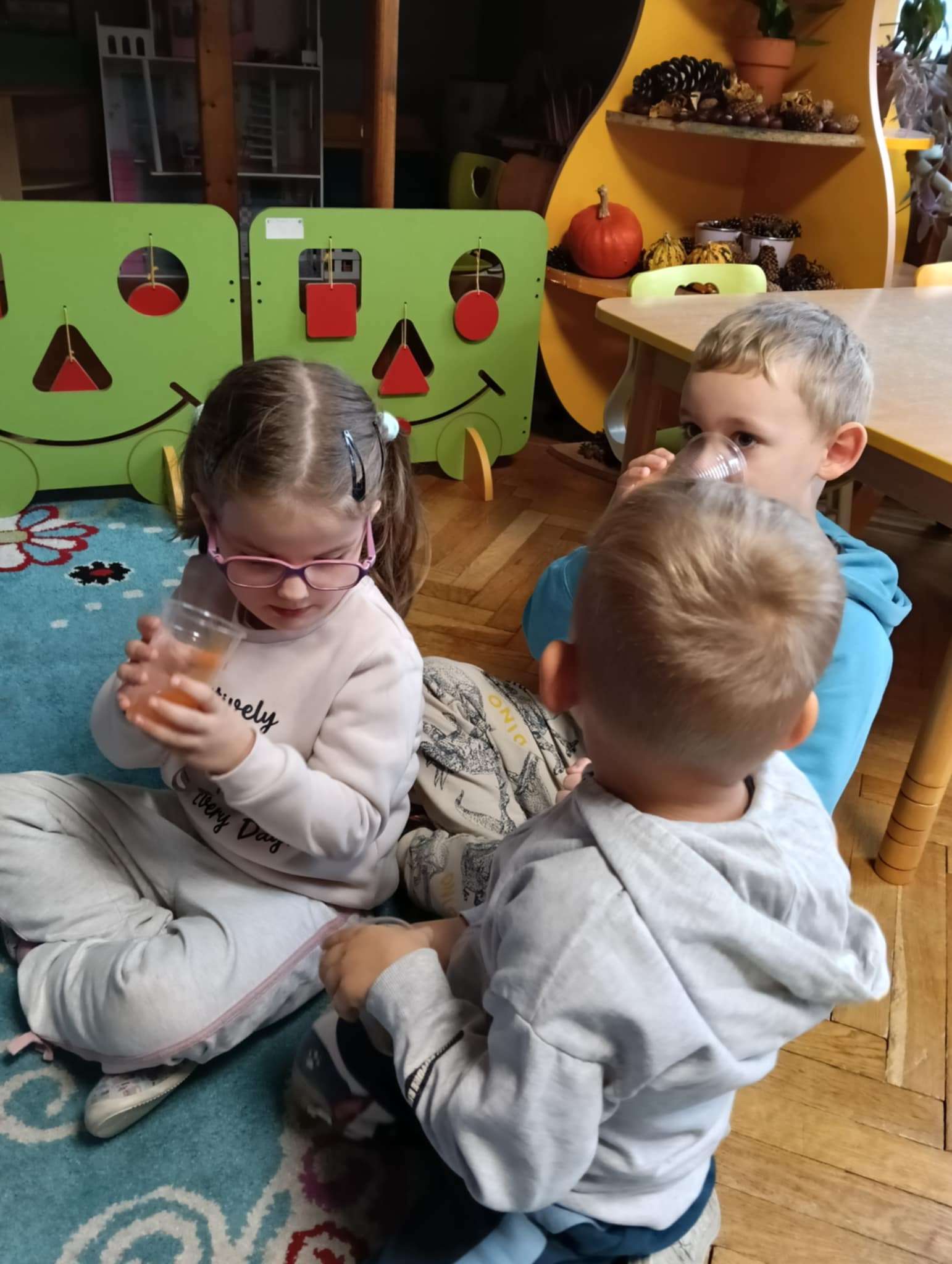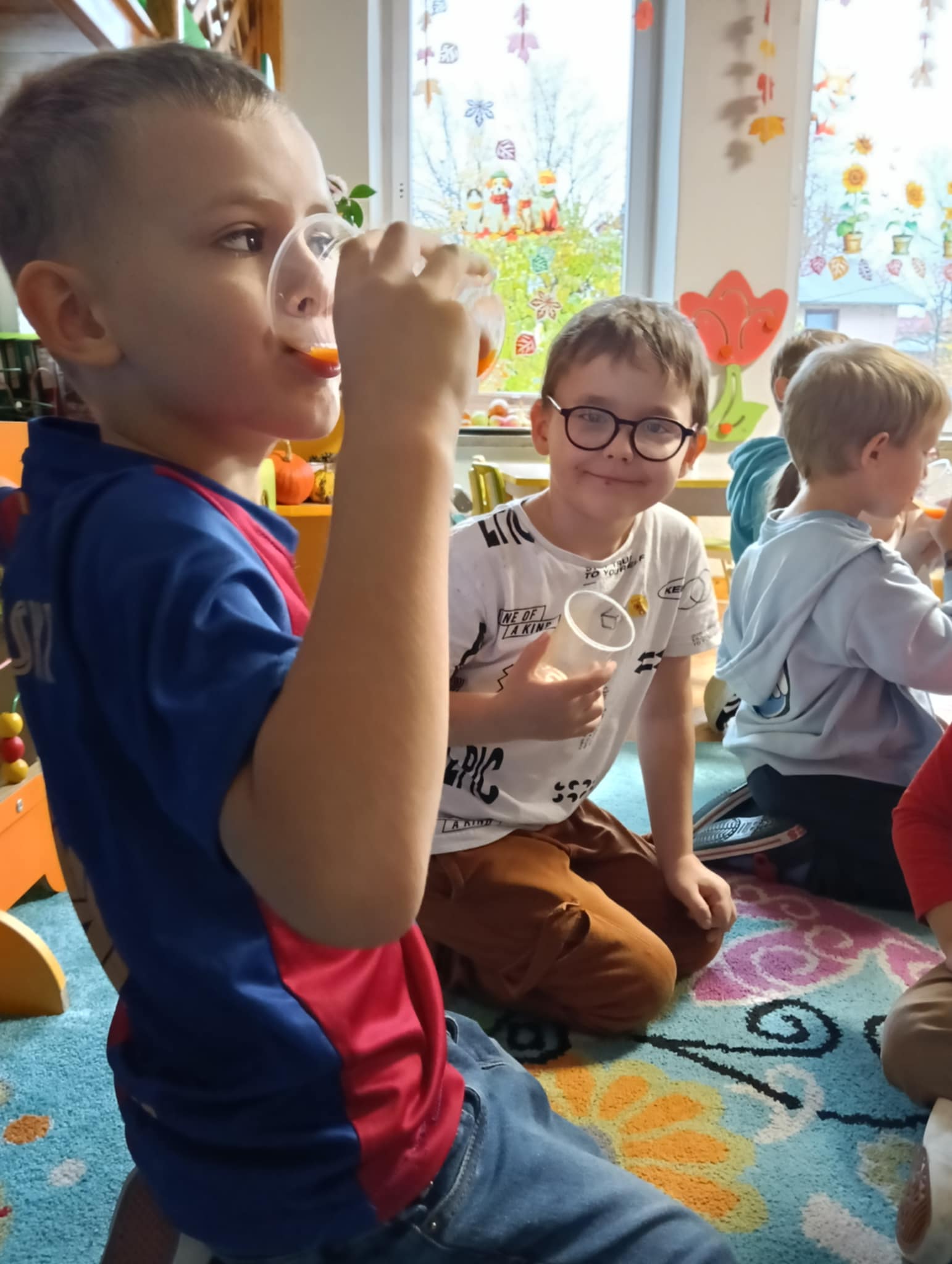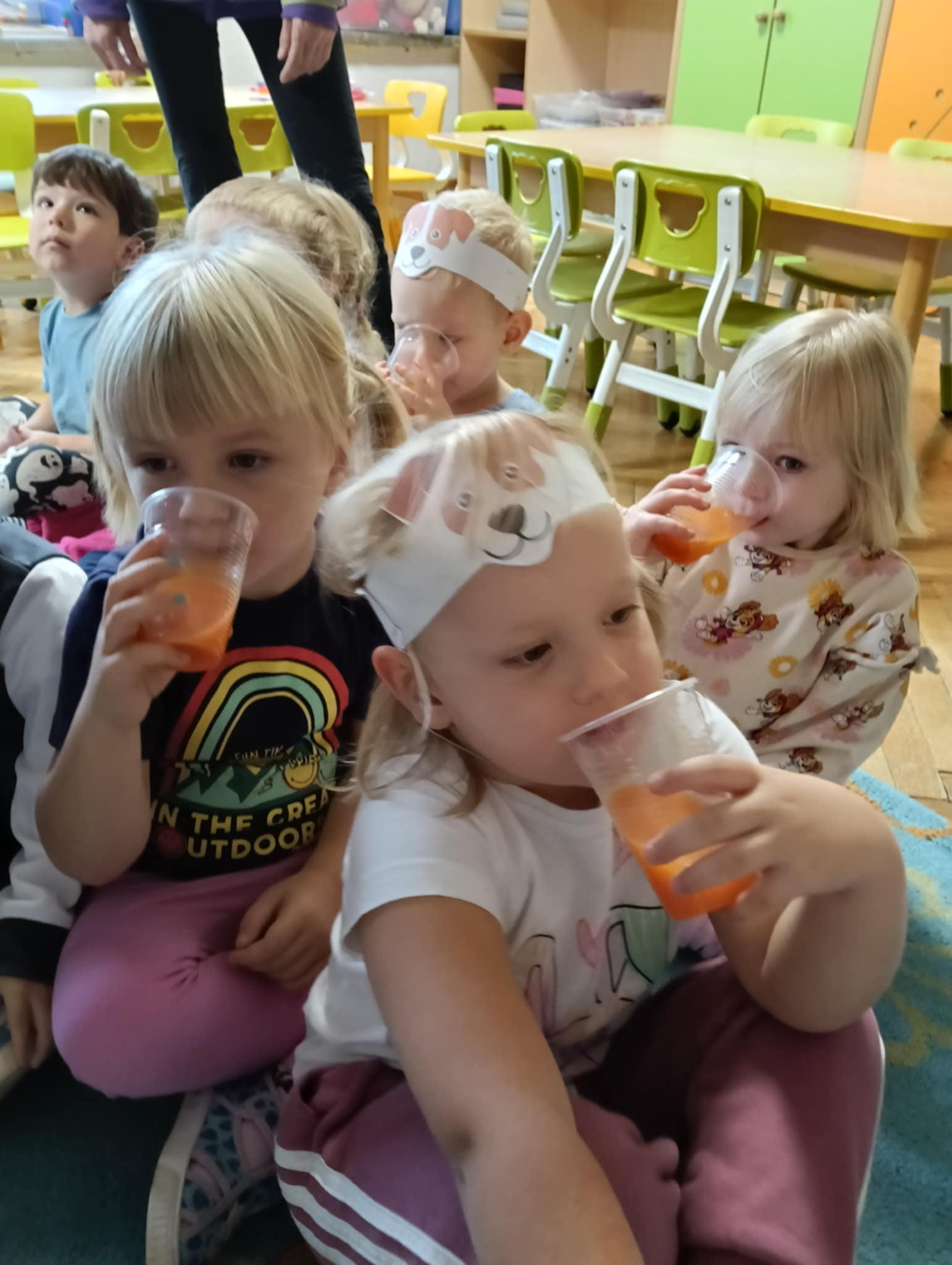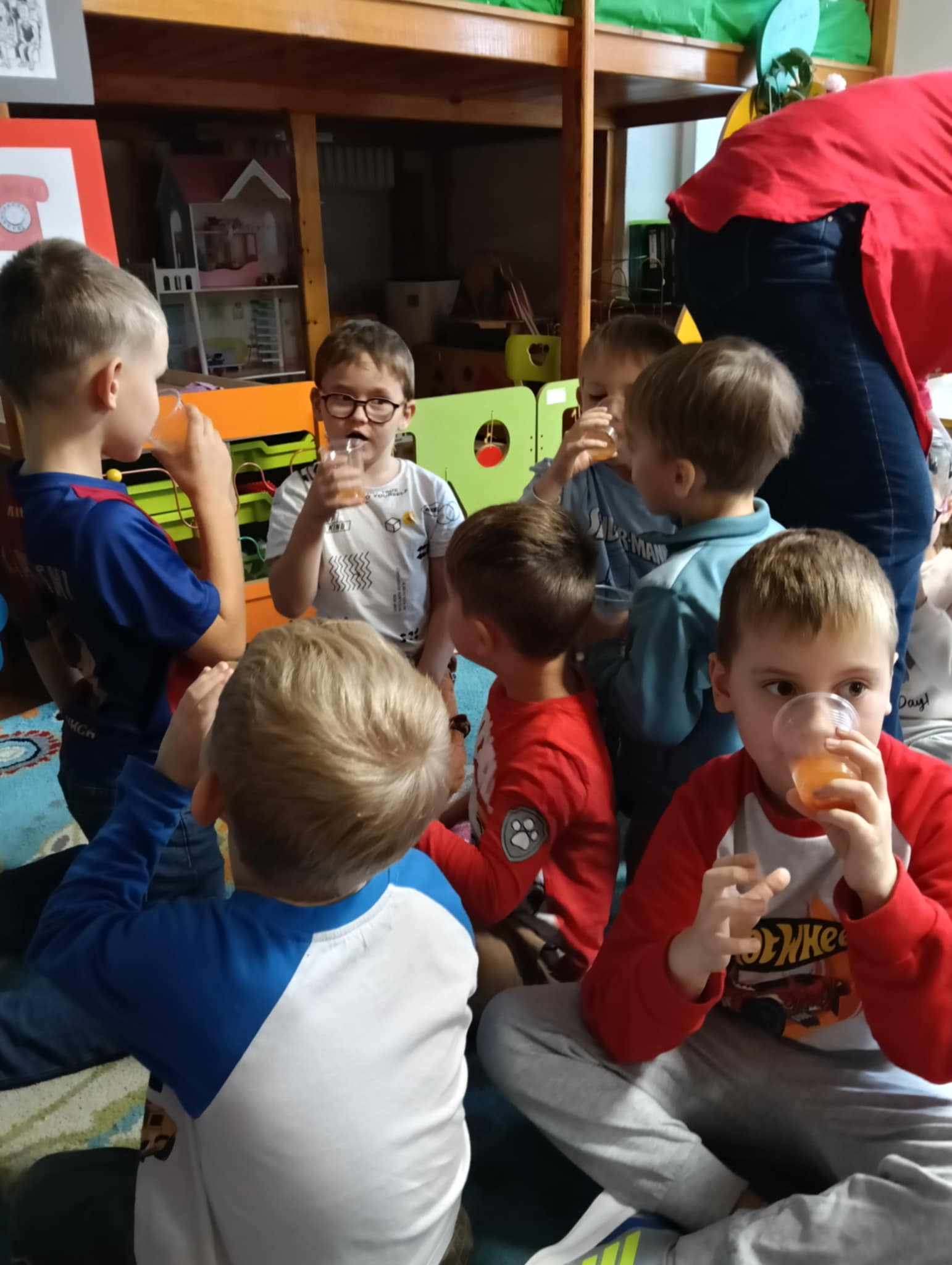 Dnia 24 października nasze przedszkolaki wzięły udział w wyjątkowym wydarzeniu promującym zdrowe odżywianie "Postaw na zdrowie" - czyli teleturniej z Paniami Anetką i Asią. Quiz ten miał na celu kształtowanie postaw prozdrowotnych i promowanie zdrowego stylu życia. W tym dniu było naprawdę wesoło, dzieci odpowiadały na pytania o zdrowiu, słuchały muzyki, zdobywały punkty w postaci owoców za prawidłowe odpowiedzi i piły eliksir zdrowia, który wyjątkowo dodawał im siły i rozjaśniał umysł do udzielania prawidłowych odpowiedzi. W ostateczności dzieci mogły skorzystać z koła ratunkowego w postaci telefonu do Pani Dyrektor, którego użyły tylko raz. Zabawa naprawdę była świetna!