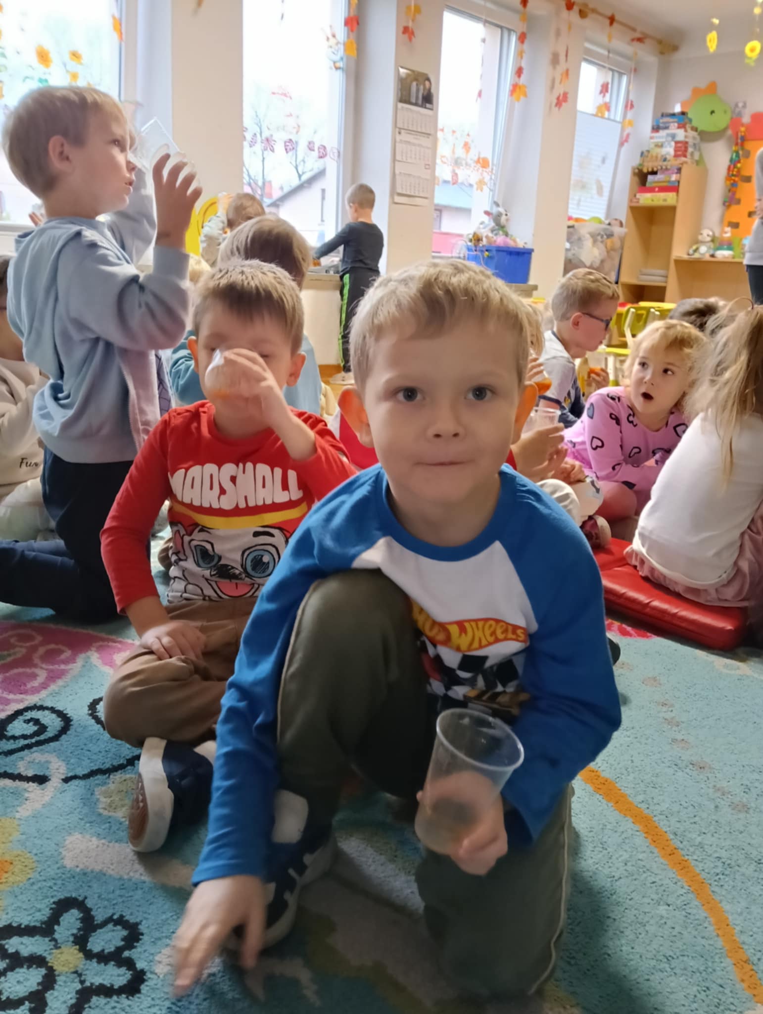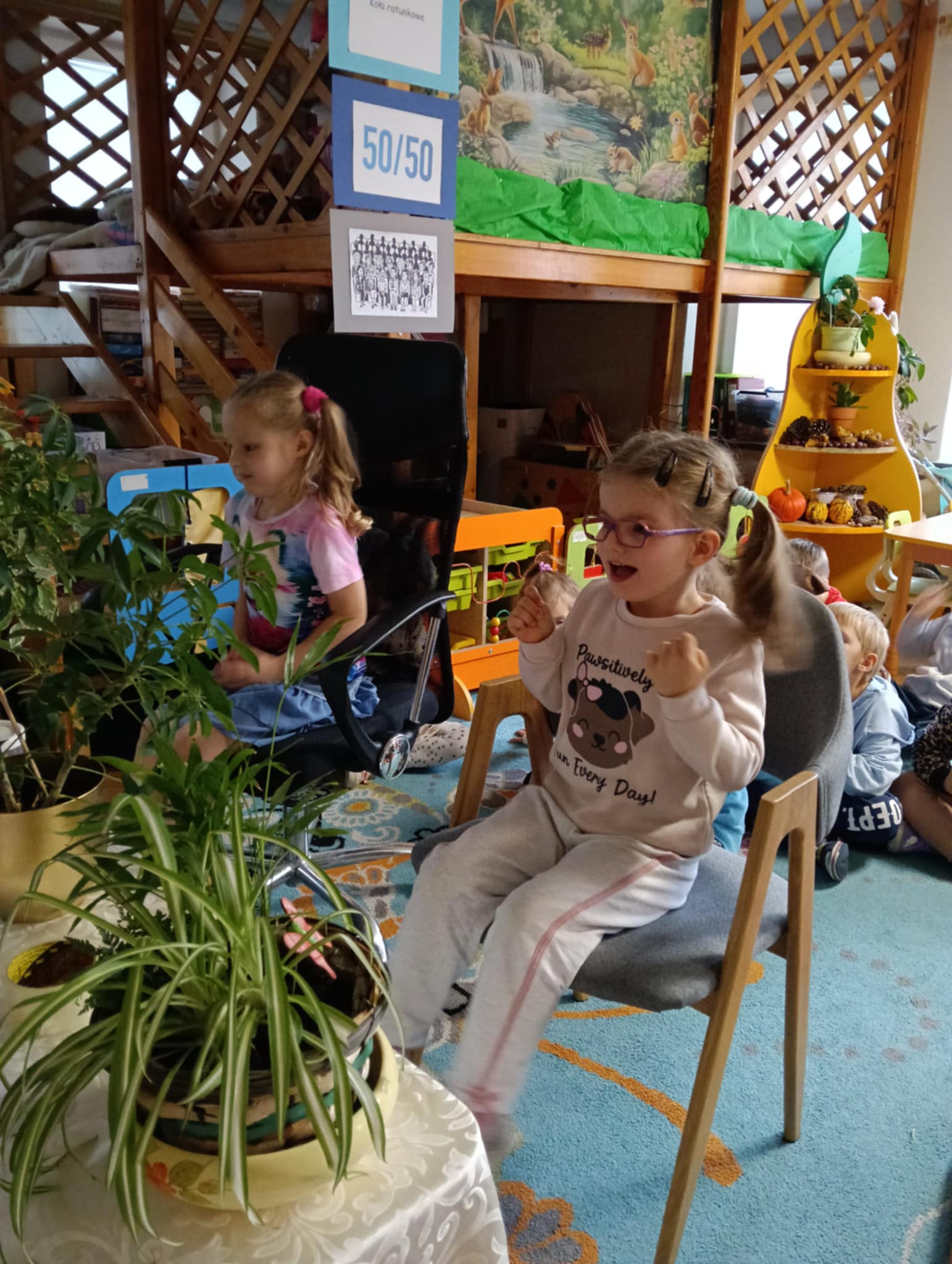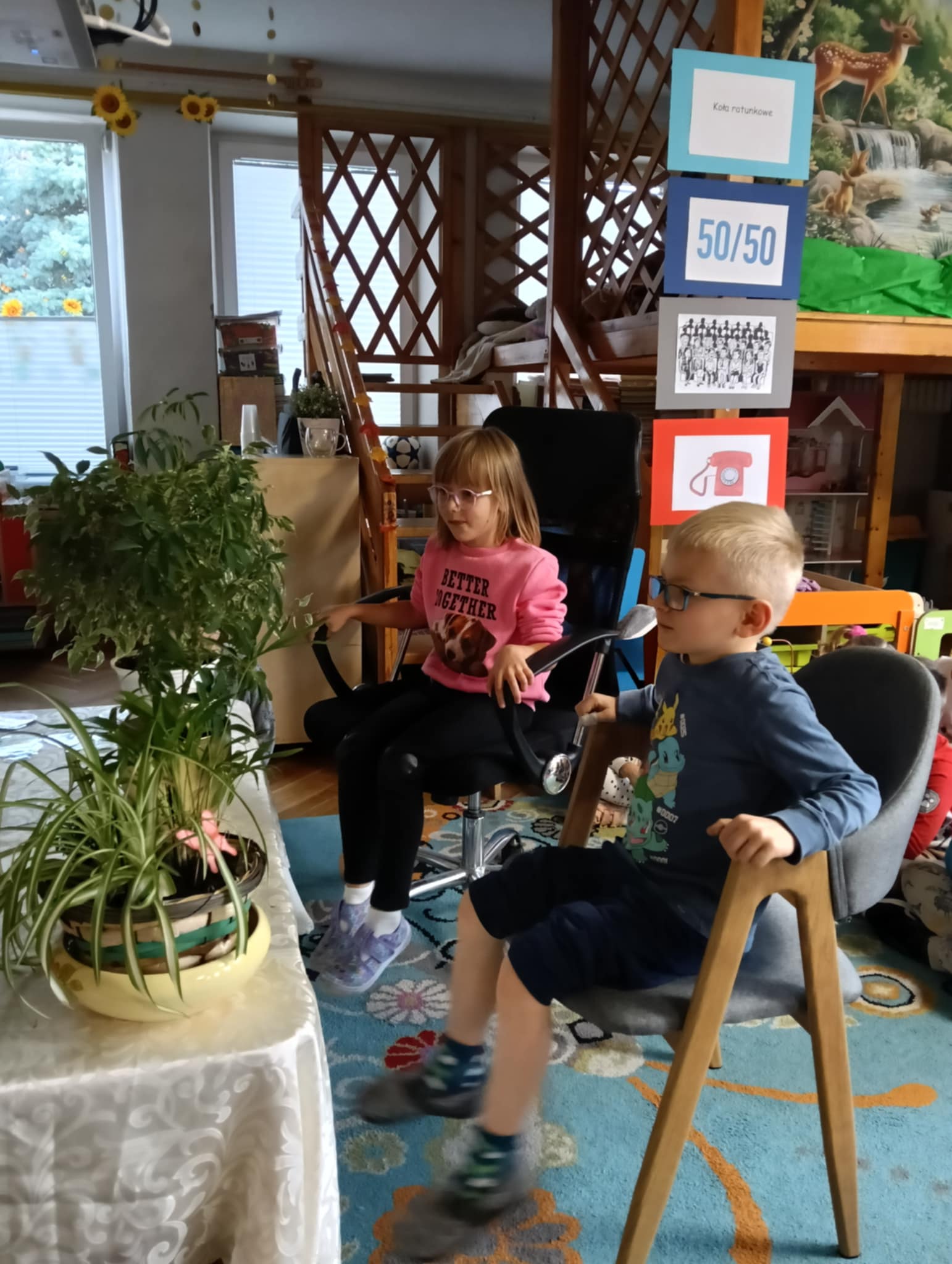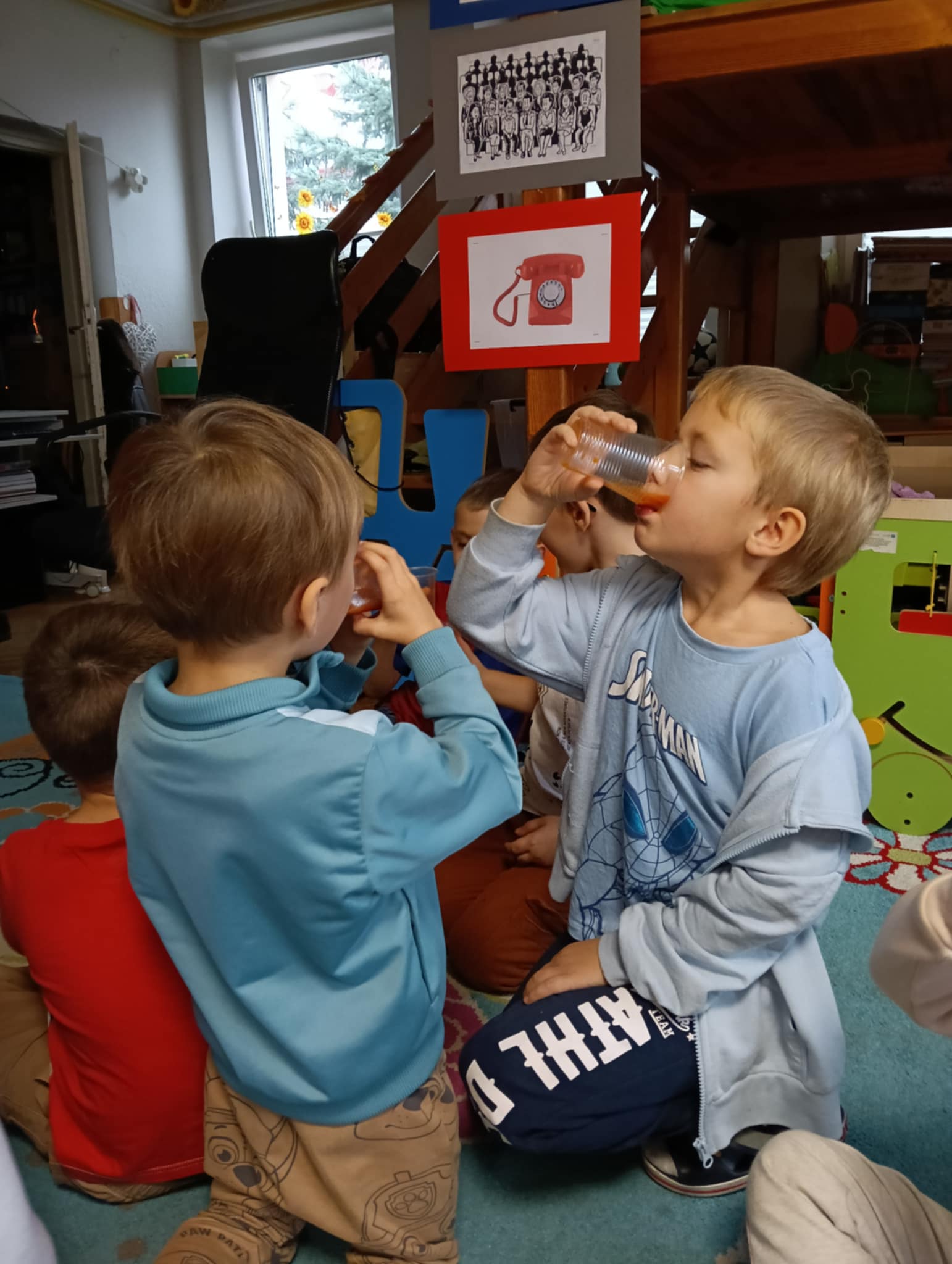 Dnia 24 października nasze przedszkolaki wzięły udział w wyjątkowym wydarzeniu promującym zdrowe odżywianie "Postaw na zdrowie" - czyli teleturniej z Paniami Anetką i Asią. Quiz ten miał na celu kształtowanie postaw prozdrowotnych i promowanie zdrowego stylu życia. W tym dniu było naprawdę wesoło, dzieci odpowiadały na pytania o zdrowiu, słuchały muzyki, zdobywały punkty w postaci owoców za prawidłowe odpowiedzi i piły eliksir zdrowia, który wyjątkowo dodawał im siły i rozjaśniał umysł do udzielania prawidłowych odpowiedzi. W ostateczności dzieci mogły skorzystać z koła ratunkowego w postaci telefonu do Pani Dyrektor, którego użyły tylko raz. Zabawa naprawdę była świetna!