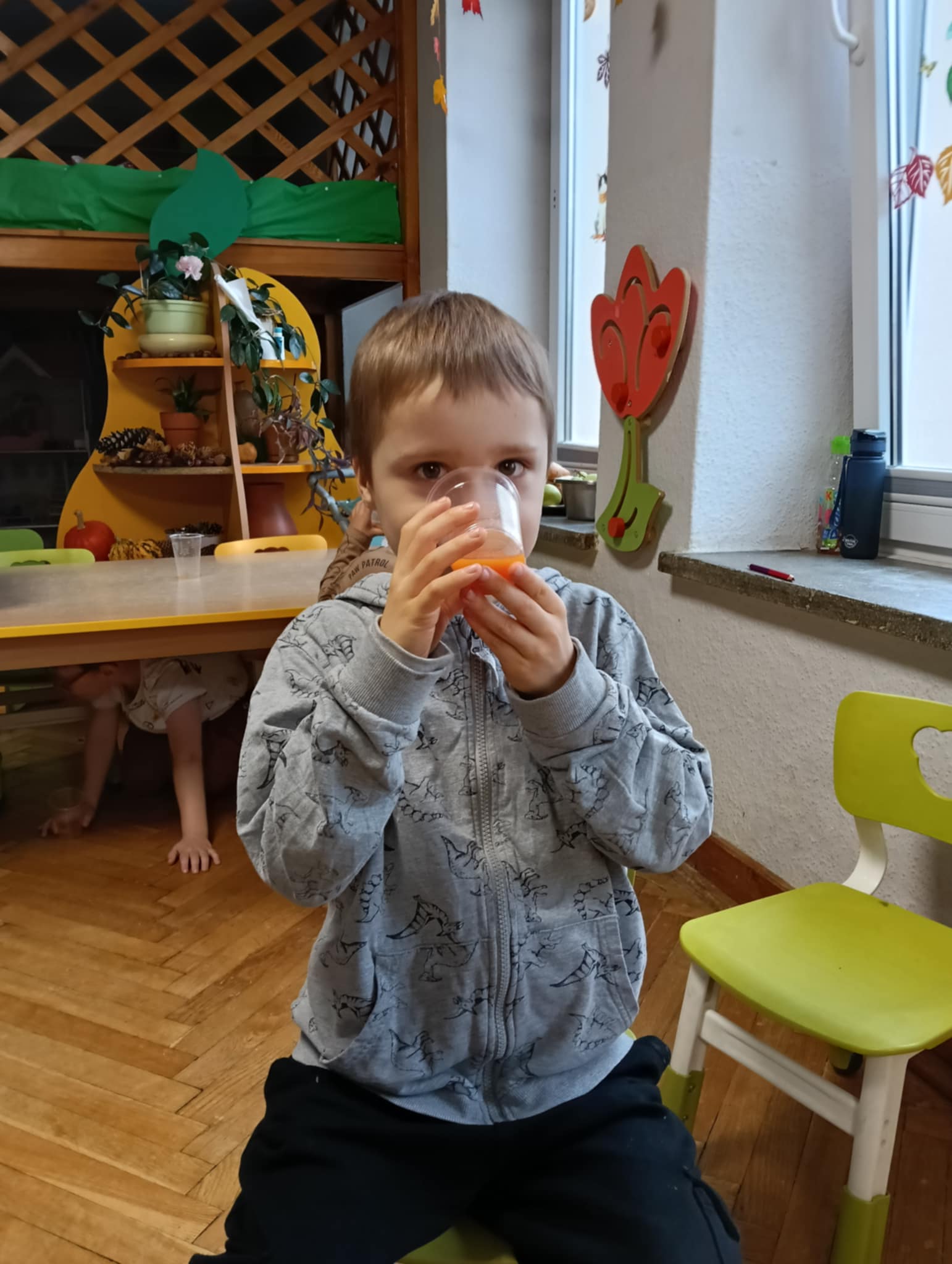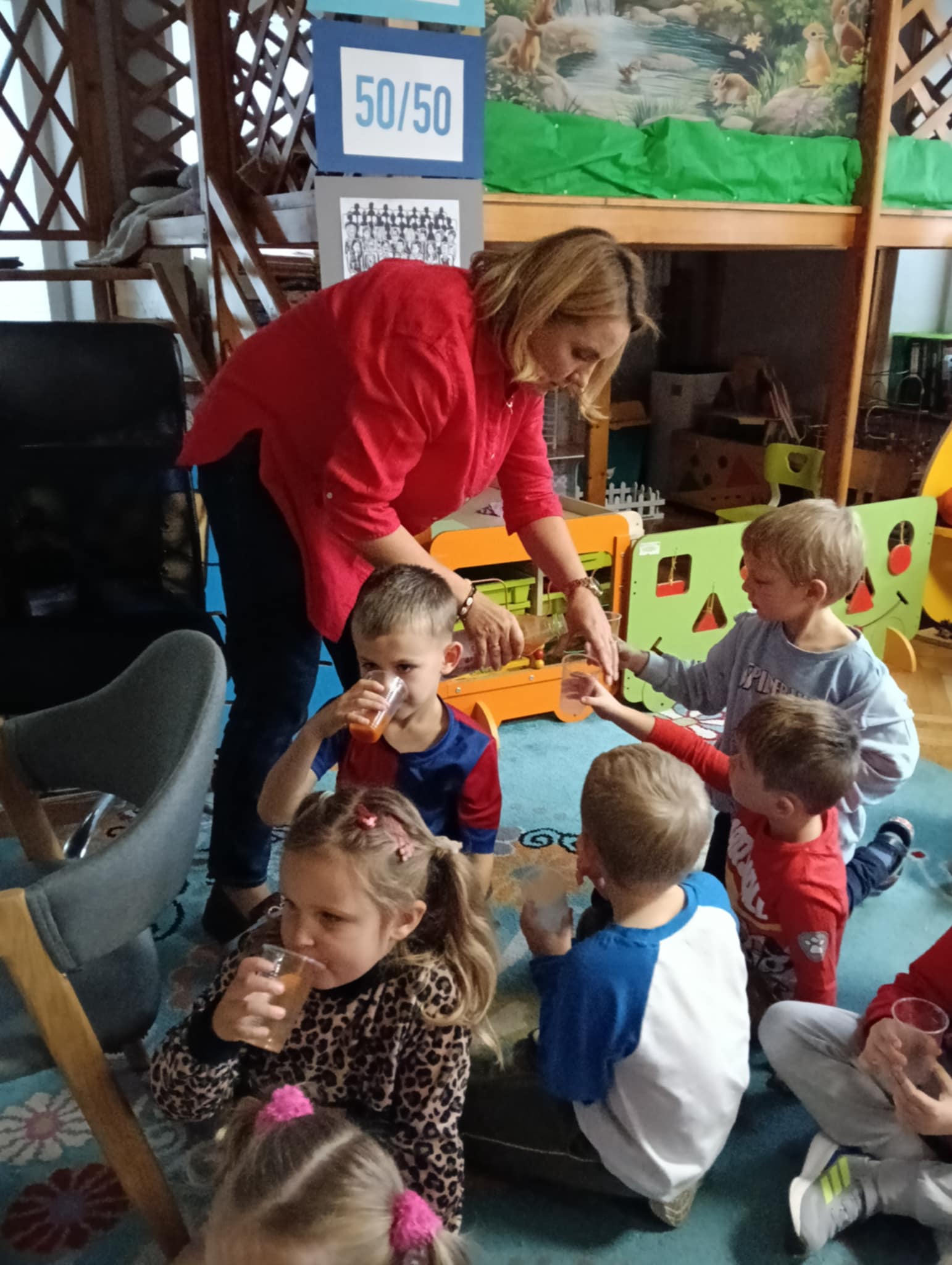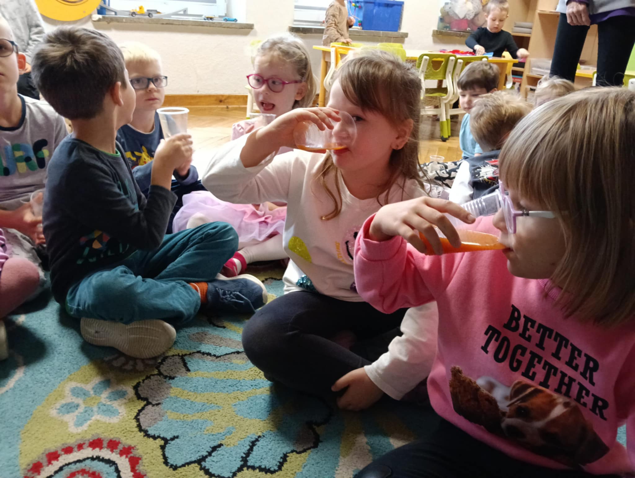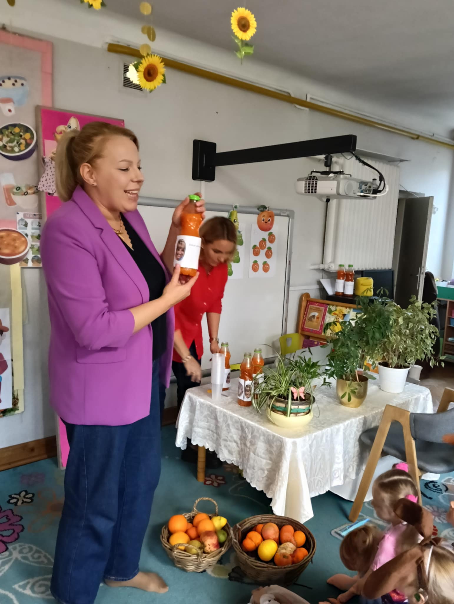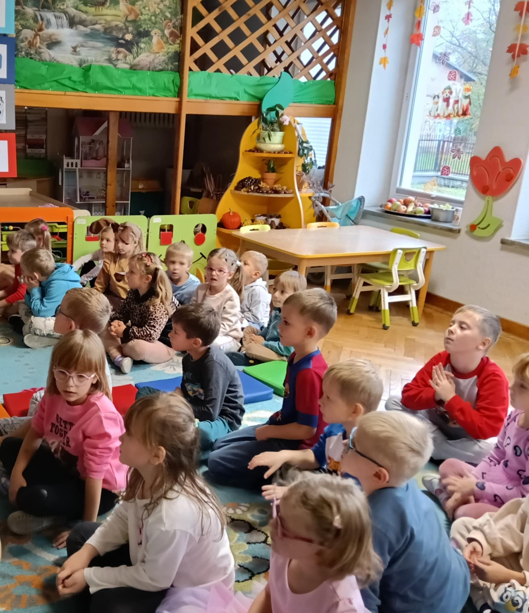 Dnia 24 października nasze przedszkolaki wzięły udział w wyjątkowym wydarzeniu promującym zdrowe odżywianie "Postaw na zdrowie" - czyli teleturniej z Paniami Anetką i Asią. Quiz ten miał na celu kształtowanie postaw prozdrowotnych i promowanie zdrowego stylu życia. W tym dniu było naprawdę wesoło, dzieci odpowiadały na pytania o zdrowiu, słuchały muzyki, zdobywały punkty w postaci owoców za prawidłowe odpowiedzi i piły eliksir zdrowia, który wyjątkowo dodawał im siły i rozjaśniał umysł do udzielania prawidłowych odpowiedzi. W ostateczności dzieci mogły skorzystać z koła ratunkowego w postaci telefonu do Pani Dyrektor, którego użyły tylko raz. Zabawa naprawdę była świetna!