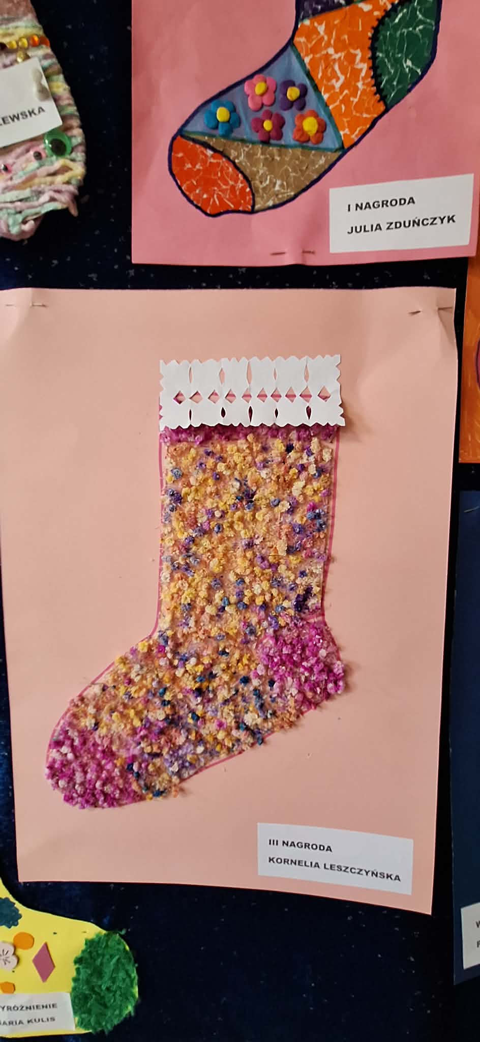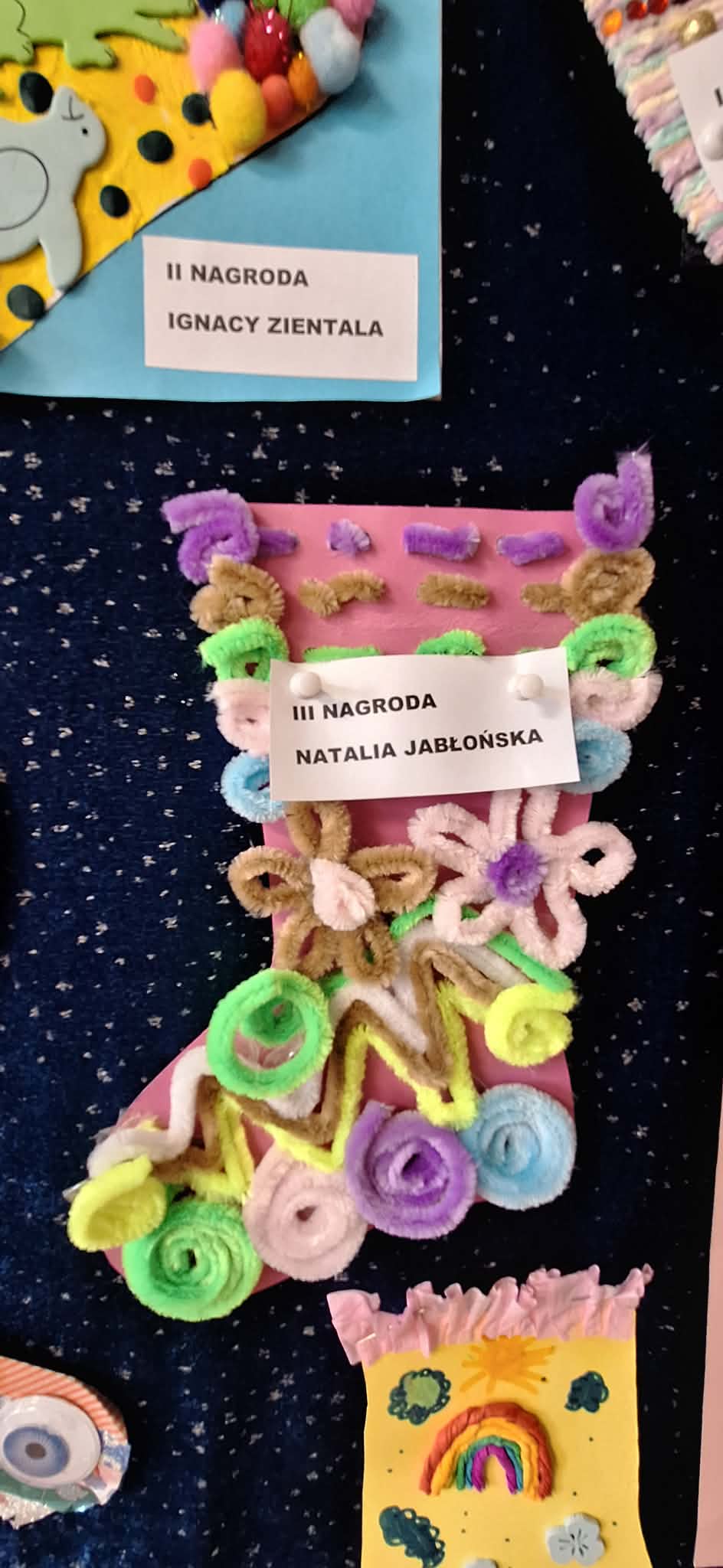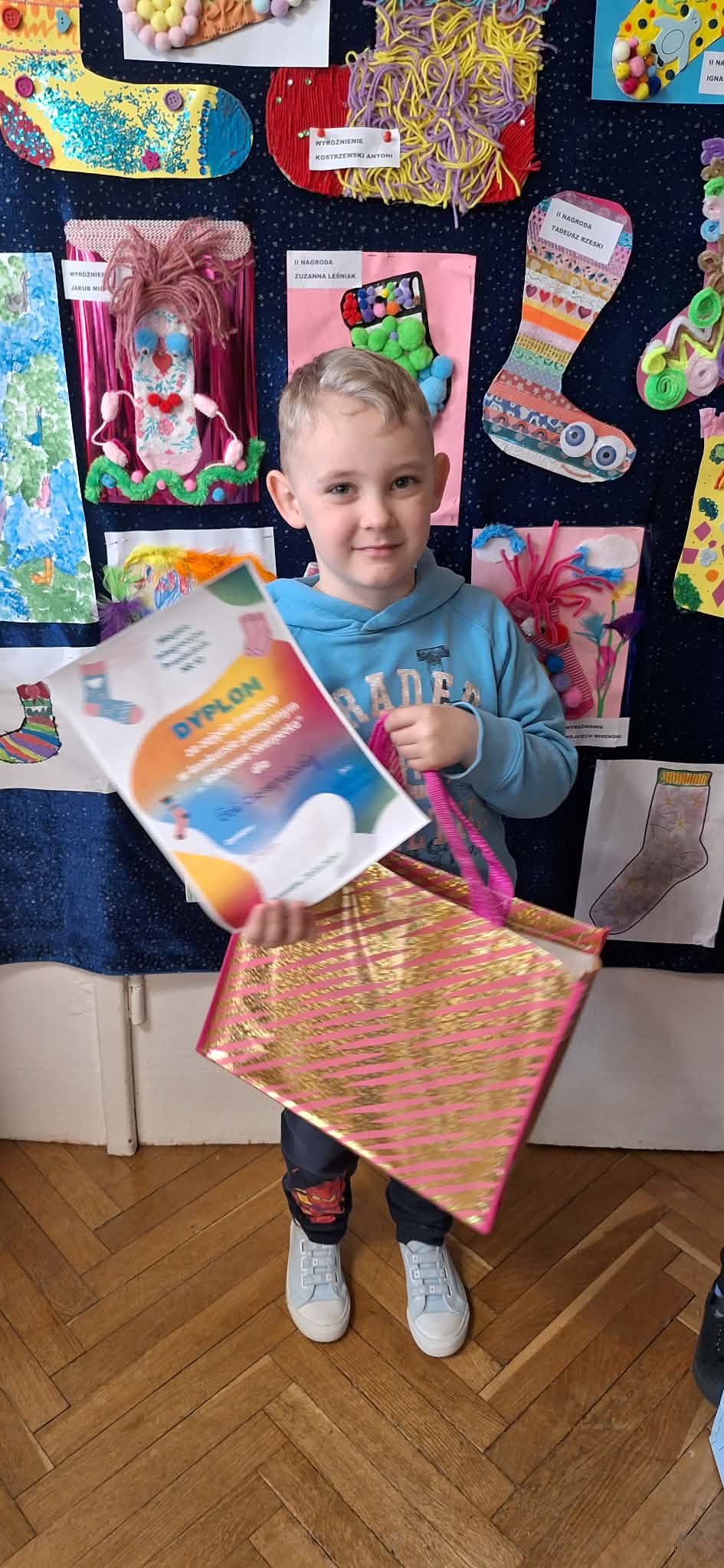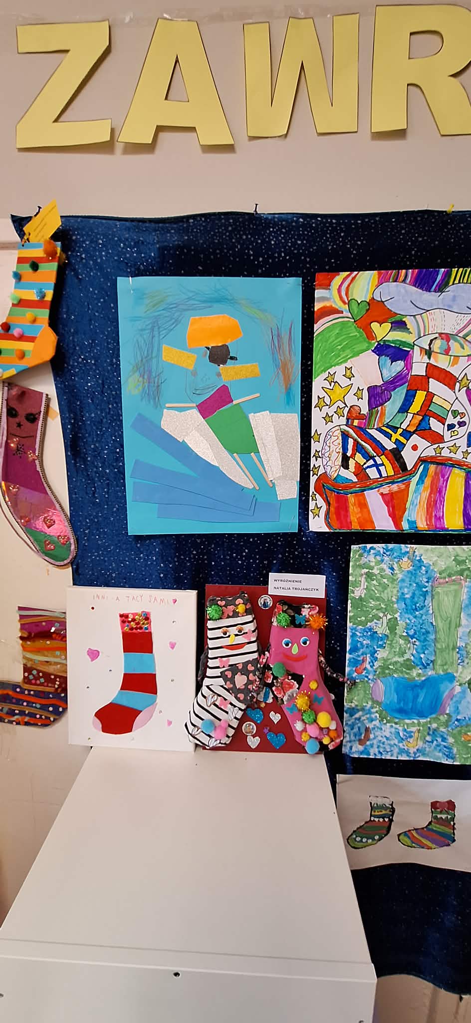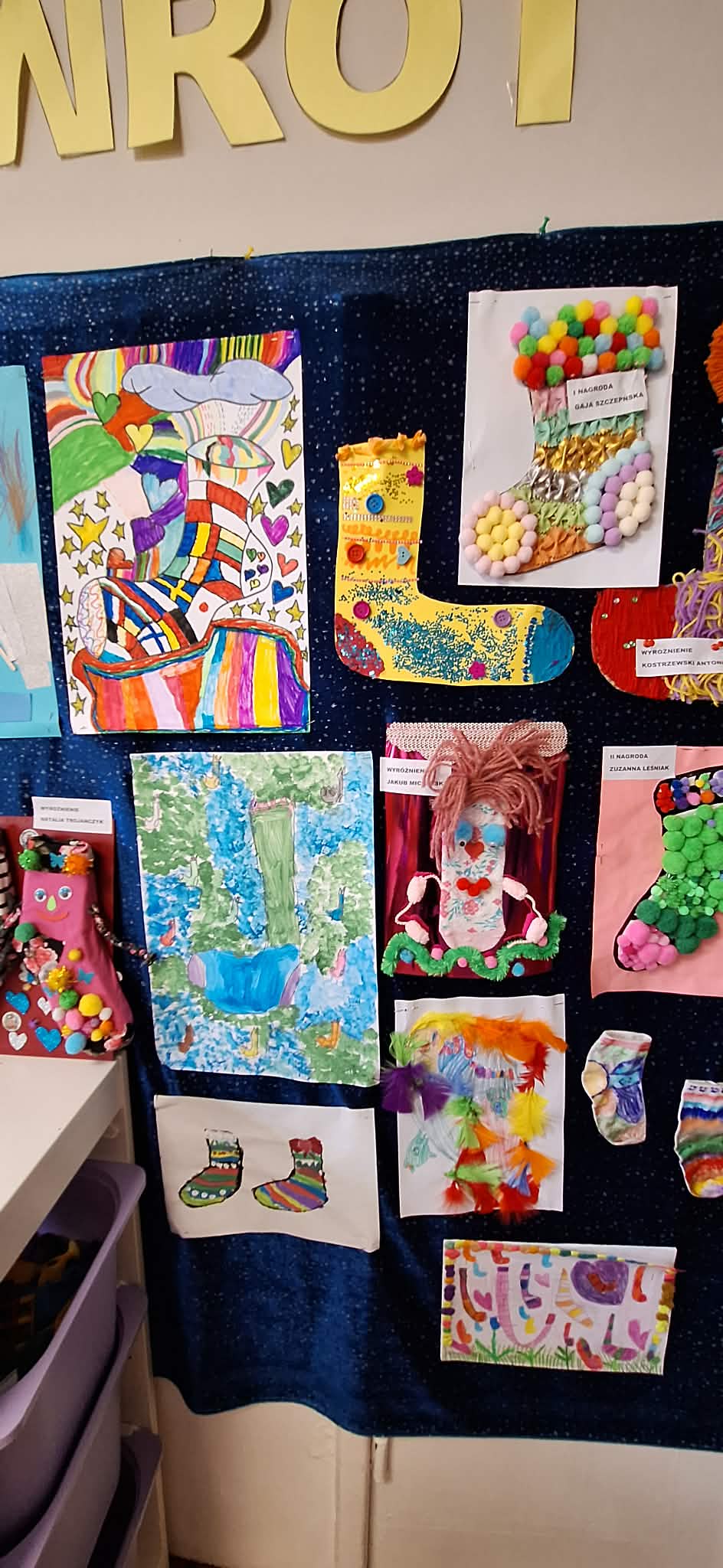 W dniu 20.03.2026 r. w przed dzień Światowego Dnia Zespołu Dawna w naszym przedszkolu odbyło się rozstrzygnięcie konkursu pastycznego "Kolorowa skarpetka". Obchody tego dnia miały uświadomić przedszkolakom, że różnorodność jest piękna, a każdy z Nas jest wyjątkowy. Tę różnorodność najlepiej wytłumaszczyć na przykładzie prac, które wpłynęły w konkursie. Każda stworzona przez dzieci skarpetka była inna, wyjątkowa, niepowtarzalna i w tym właśnie tkwi ich piękno. Tak samo jak skarpetki ludzie mogą być różni i to czyni ich wyjątkowymi. Konkurs, którego byliśmy organizatorami skierowany był do dzieci z miejskich przedszkoli z terenu miasta Żyrardowa. Prace wpłynęły bardzo licznie, oprócz naszych przedszkolaków w konkursie wzieły udział również dzieci z Miejskiego Przedszkola Nr 5 oraz Miejskiego Przedszkola Nr 9, wśród autorów prac zostali wyłonieni laureaci w 4 kategoriach wiekowych: