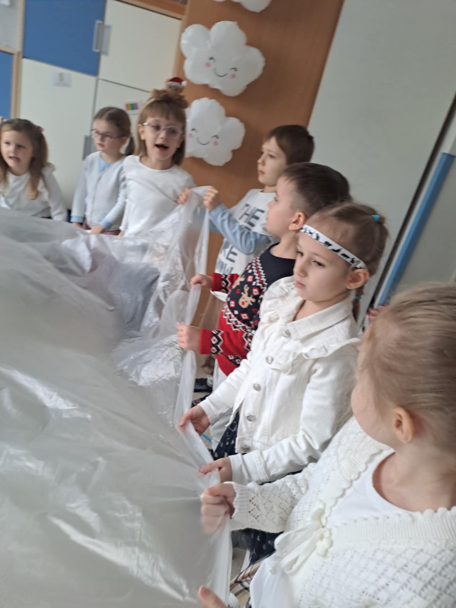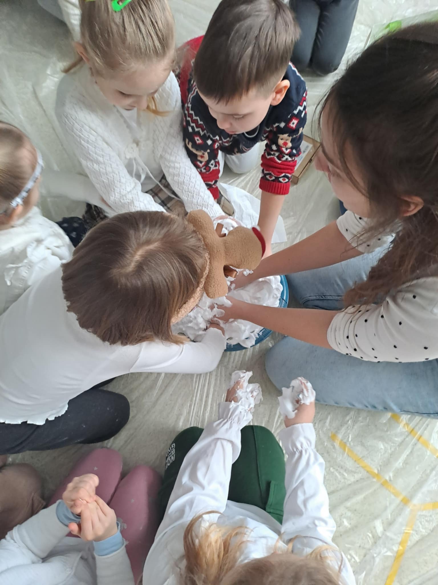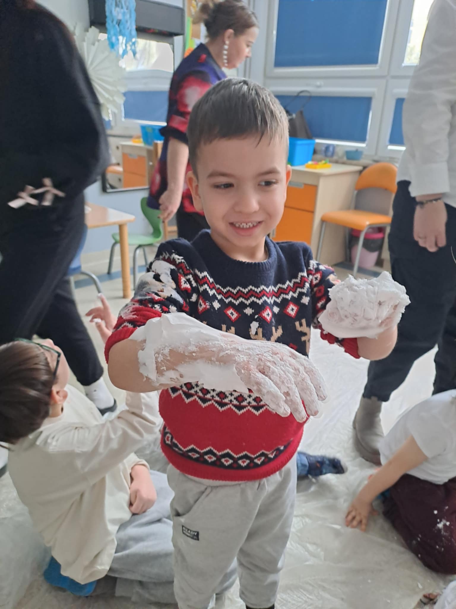 Z inicjatywy pedagoga specjalnego w dniu 9 stycznia 2026 r. odbyło się kolejne integracyjne spotkanie naszych przedszkolaków z przedszkolakami z Przedszkola Specjalnego w Ośrodku Szkolno - Wychowawczym w Żyrardowie. Tym razem gościliśmy u naszych przyjaciół, uczestnicząc w integracyjnych zimowych zabawach sensorycznych. Dzieci obu grup wspaniałe współpracowały, a różnorodność zabaw, pomysły i doświadczenia z "kolorowym śniegiem" sprzyjały cudownej atmosferze, pełnej samych pozytywnych emocji. Śpiew, muzyka i zajęcia rytmiczne dopełniły atmosferę świetnej zabawy i integracji dzieci.
