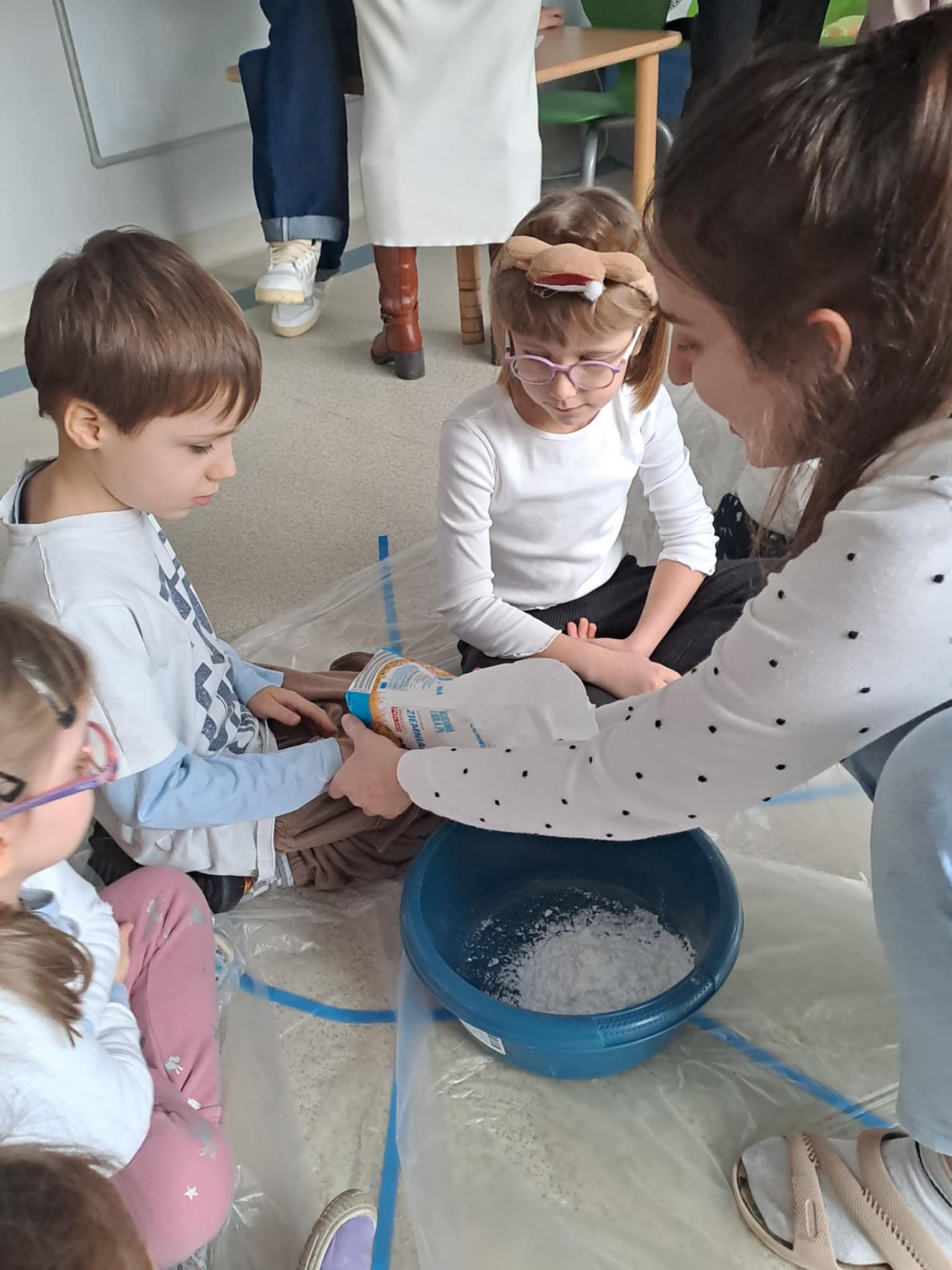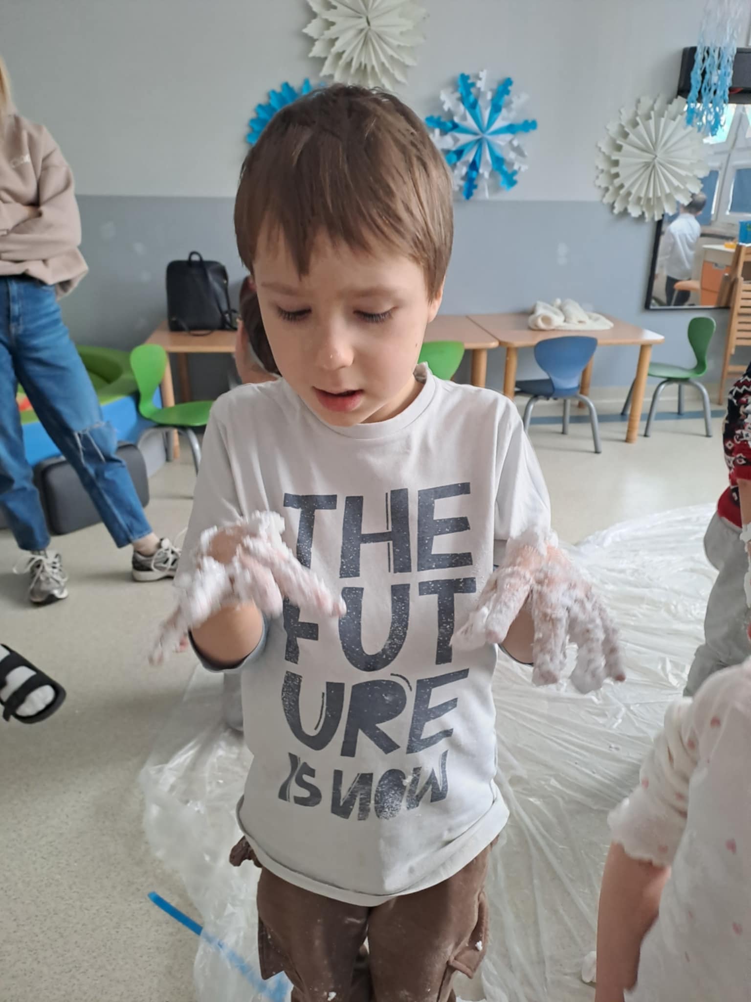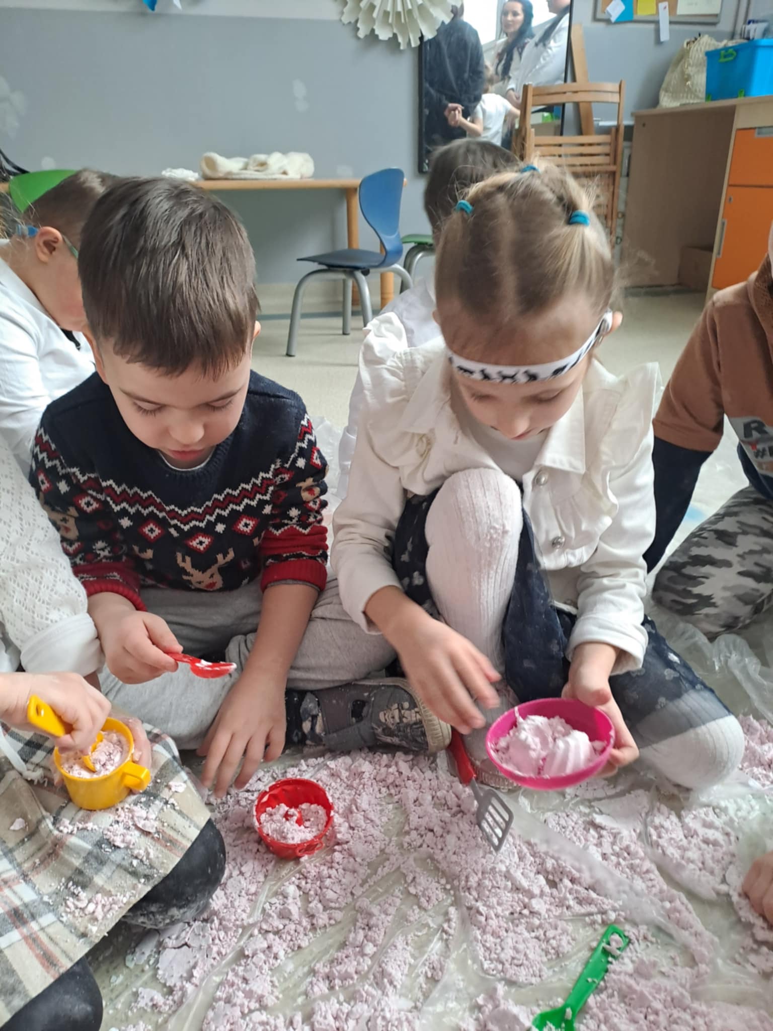 Z inicjatywy pedagoga specjalnego w dniu 9 stycznia 2026 r. odbyło się kolejne integracyjne spotkanie naszych przedszkolaków z przedszkolakami z Przedszkola Specjalnego w Ośrodku Szkolno - Wychowawczym w Żyrardowie. Tym razem gościliśmy u naszych przyjaciół, uczestnicząc w integracyjnych zimowych zabawach sensorycznych. Dzieci obu grup wspaniałe współpracowały, a różnorodność zabaw, pomysły i doświadczenia z "kolorowym śniegiem" sprzyjały cudownej atmosferze, pełnej samych pozytywnych emocji. Śpiew, muzyka i zajęcia rytmiczne dopełniły atmosferę świetnej zabawy i integracji dzieci.