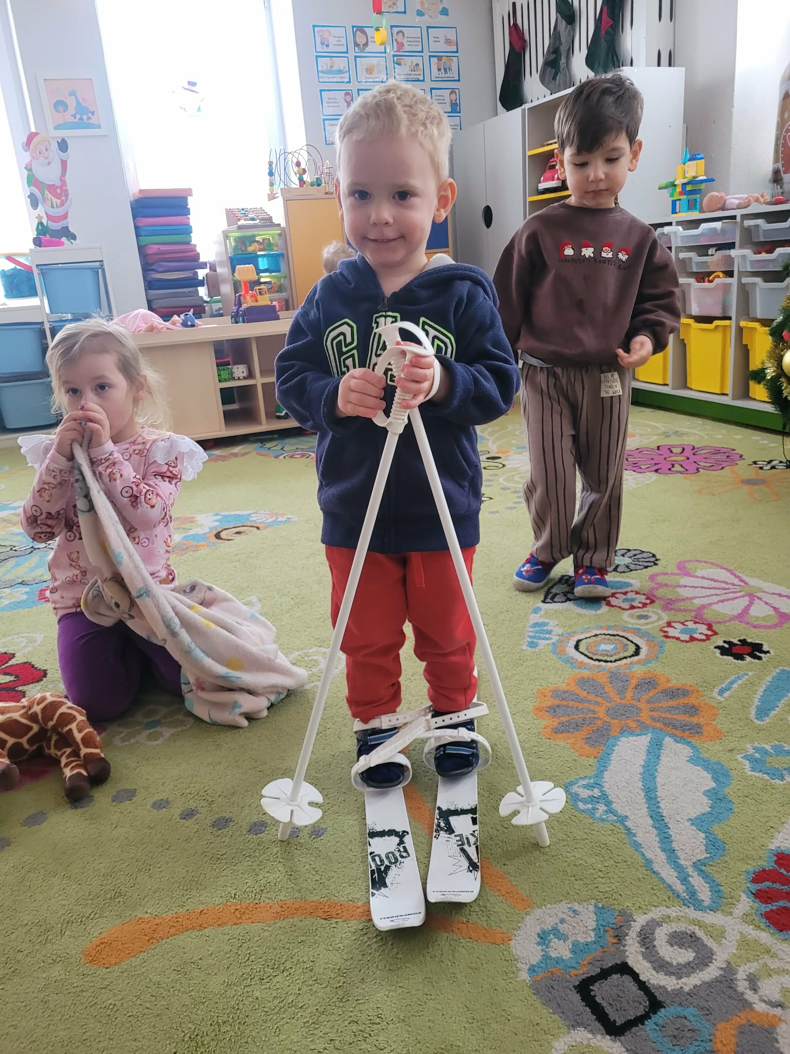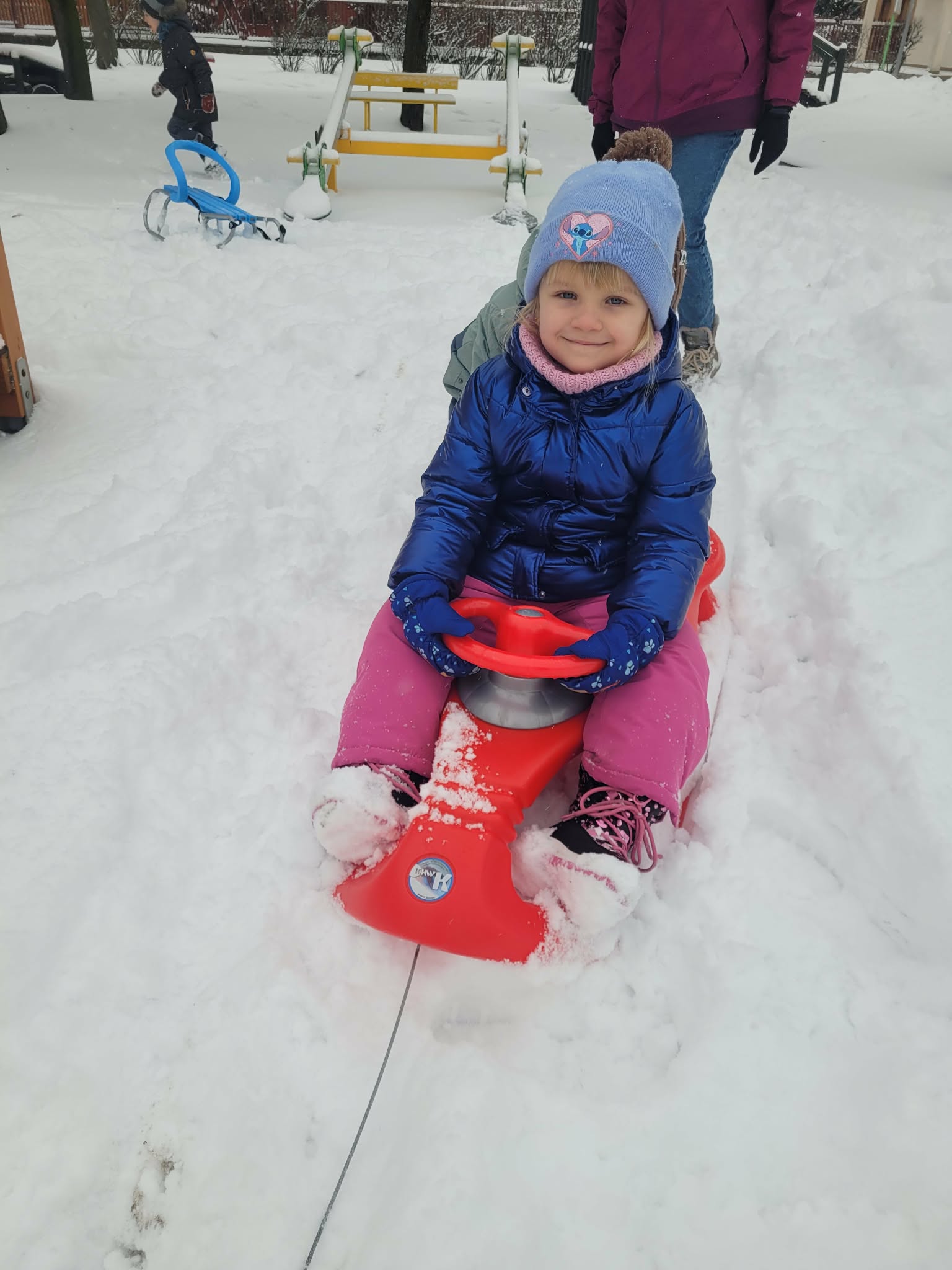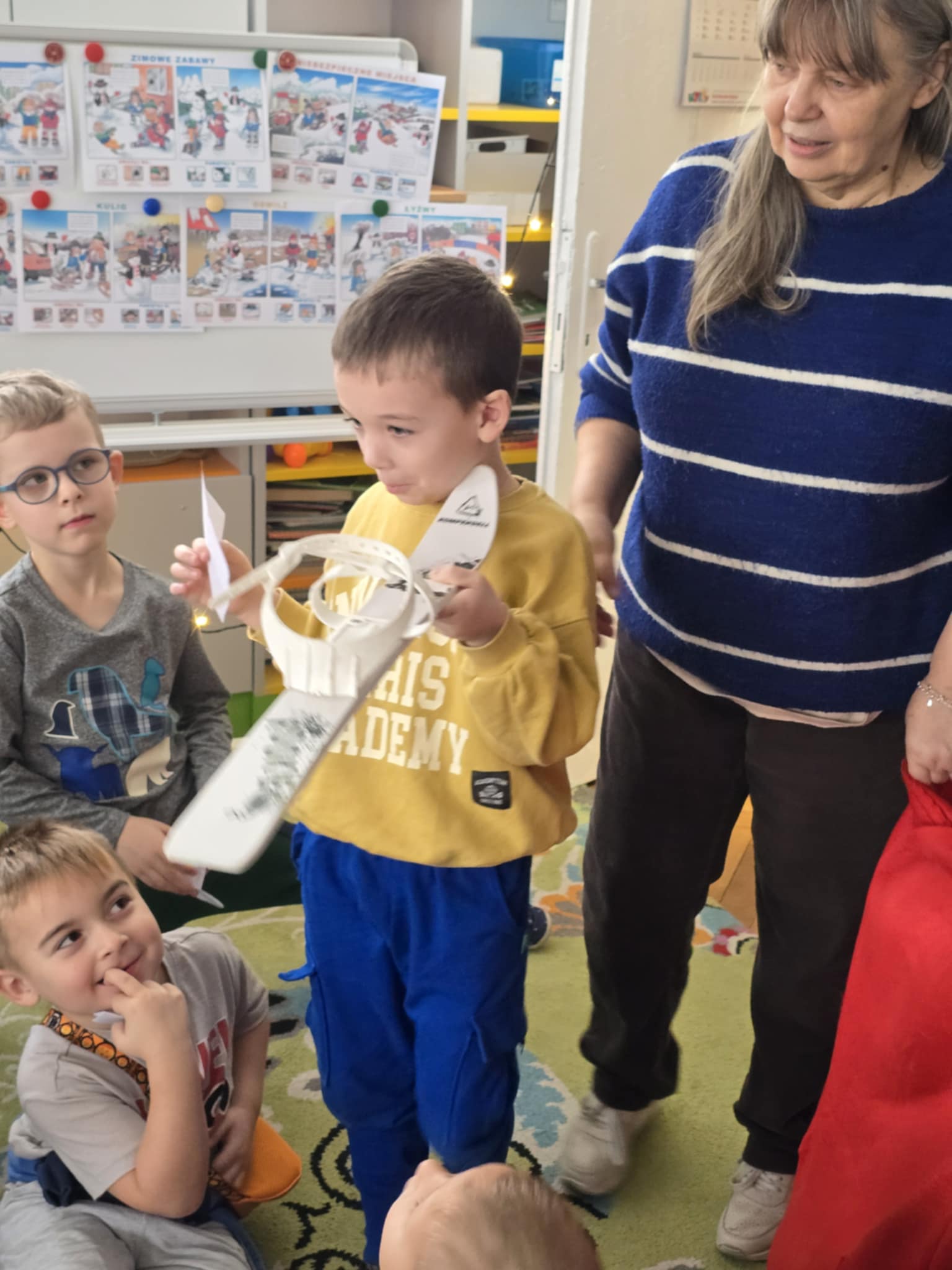 12 stycznia w naszym przedszkolu odbyły się zimowe zabawy na śniegu. Zostały poprzedzone zajęciami w sali, które miały nauczyć dzieci bezpiecznego korzystania z zimowych atrakcji. Dzieci poznały różne zimowe sporty, oraz akcesoria, które do nich służą. Przypomniały sobie jak należy ubierać się w mroźne dni. Nie zabrakło również aktywności z elementem rywalizacjii: poszukiwanie swojej czapki i jak najszybsze jej założenie oraz rzuty śnieżkami do celu. Potem dzieci wyszły na dwór, żeby bezpiecznie pobawić się na śniegu. Na koniec mogły napiś się ciepłego kakao.