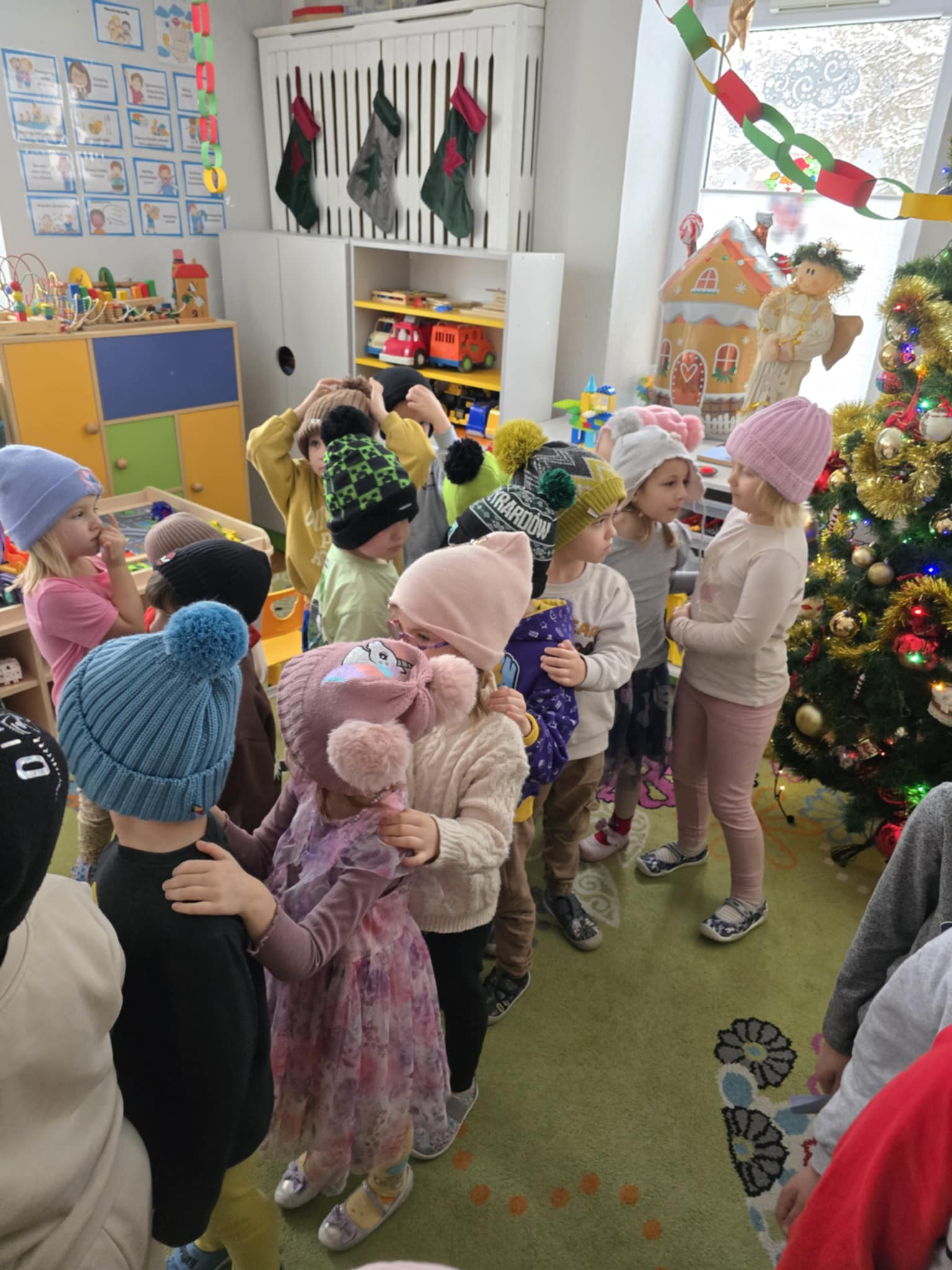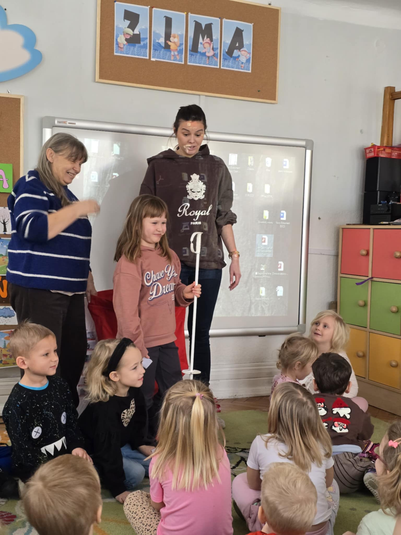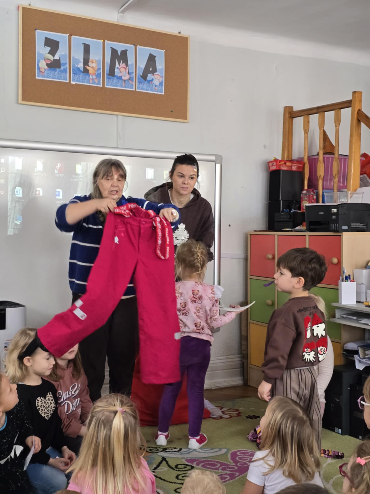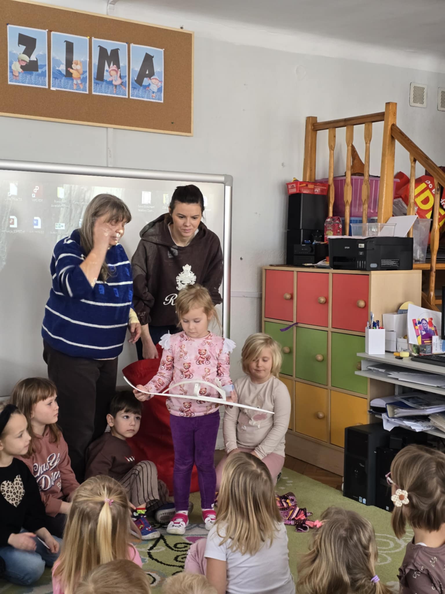 12 stycznia w naszym przedszkolu odbyły się zimowe zabawy na śniegu. Zostały poprzedzone zajęciami w sali, które miały nauczyć dzieci bezpiecznego korzystania z zimowych atrakcji. Dzieci poznały różne zimowe sporty, oraz akcesoria, które do nich służą. Przypomniały sobie jak należy ubierać się w mroźne dni. Nie zabrakło również aktywności z elementem rywalizacjii: poszukiwanie swojej czapki i jak najszybsze jej założenie oraz rzuty śnieżkami do celu. Potem dzieci wyszły na dwór, żeby bezpiecznie pobawić się na śniegu. Na koniec mogły napiś się ciepłego kakao.